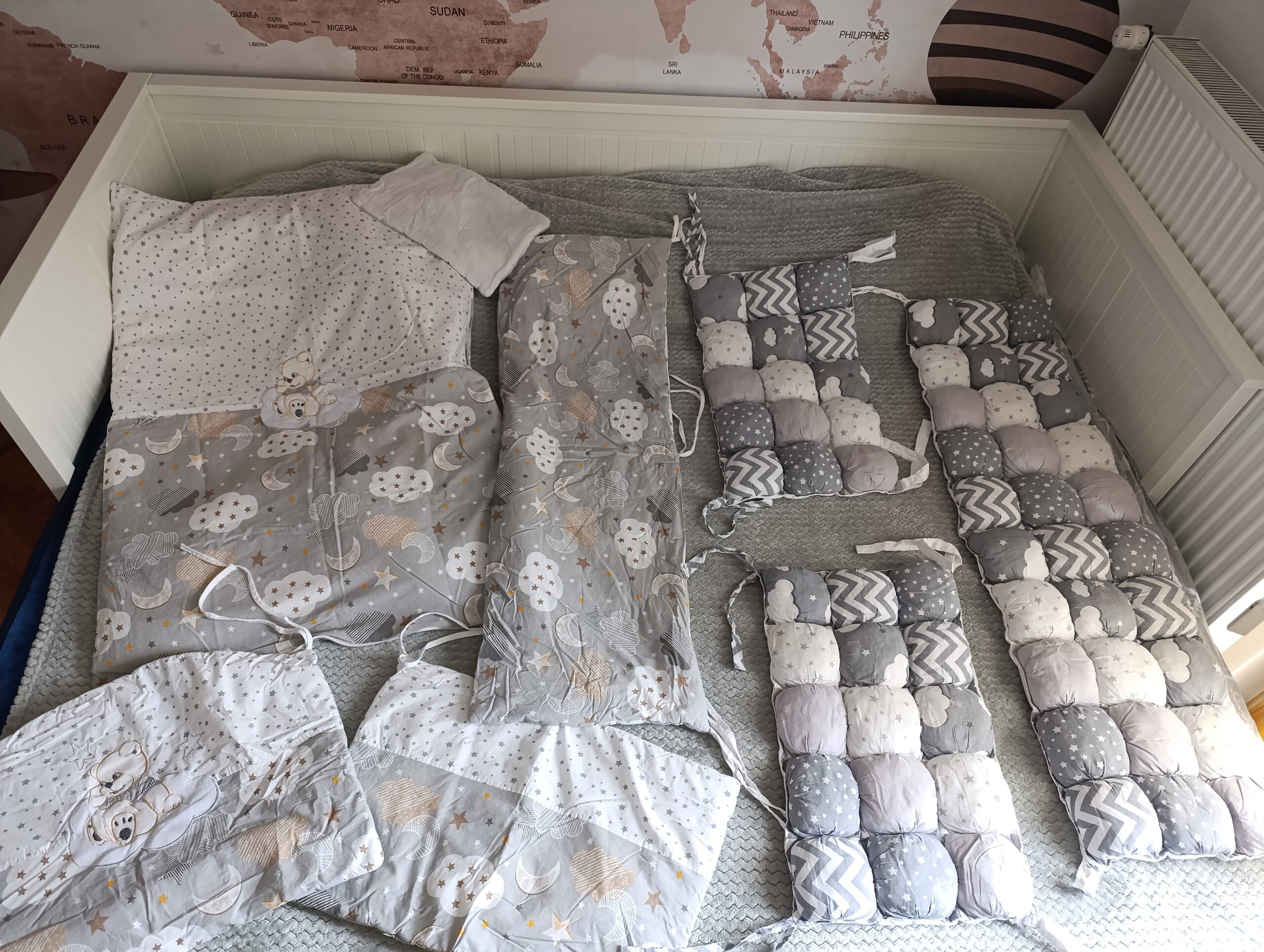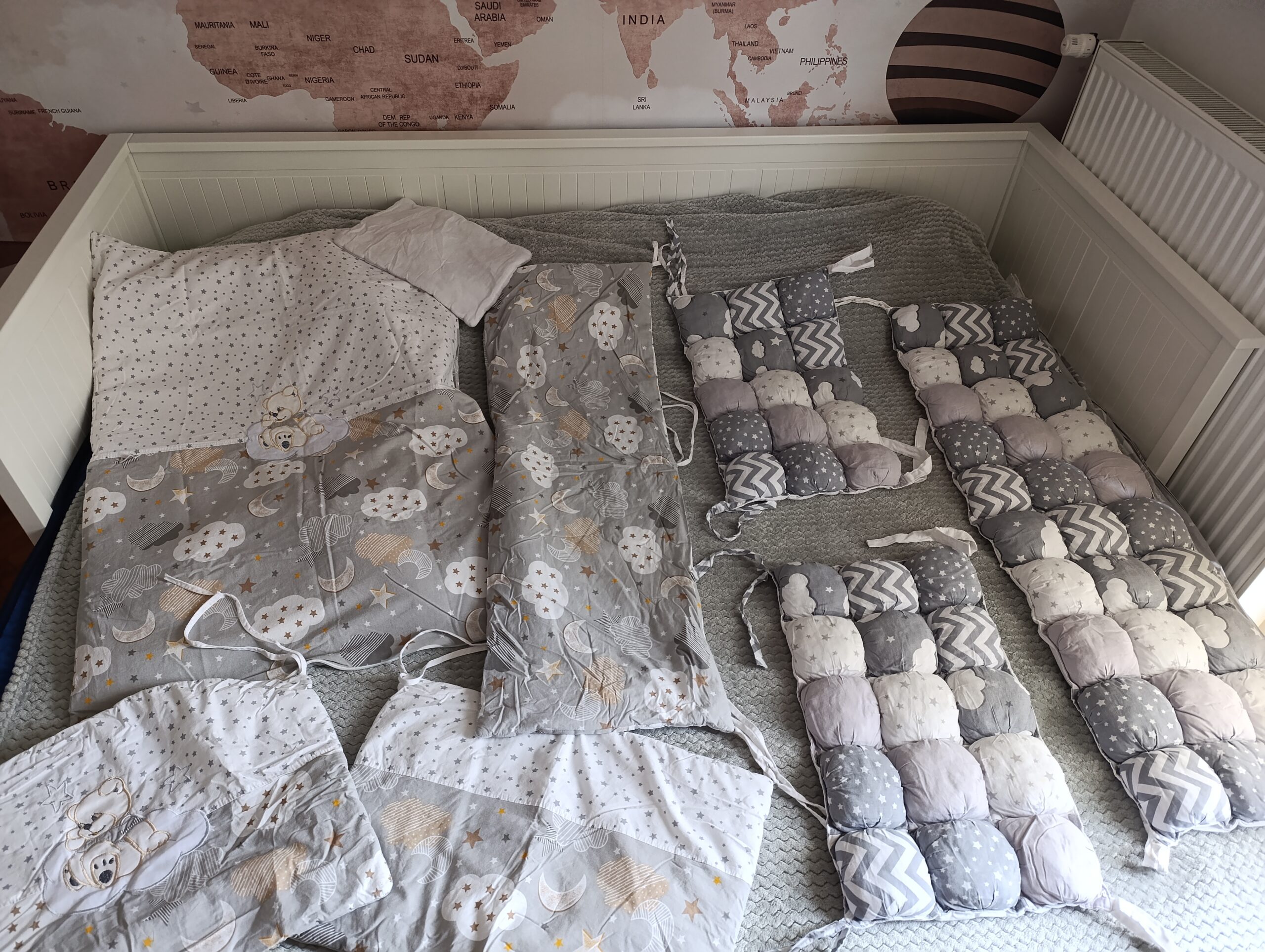 2 očuvane ogradice za krevetac. Ogradica sa medom na slici moze biti sa dva lica, uz nju dolazi i jorgan kome se skida navlaka u istom dezenu.