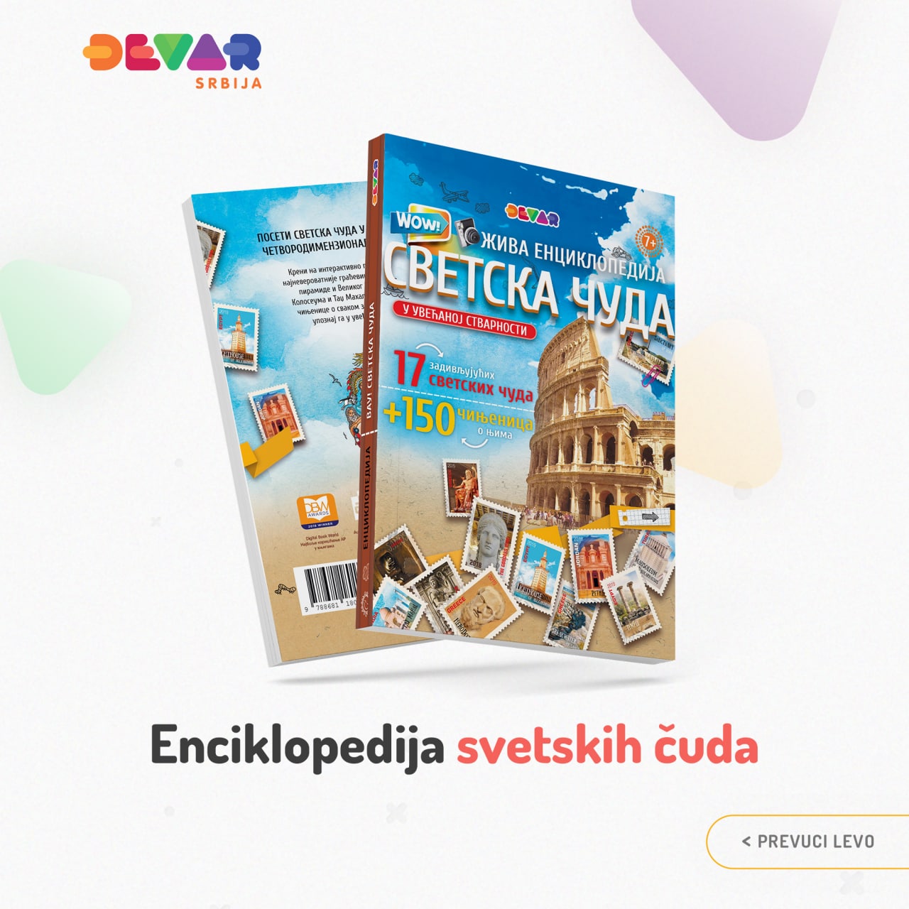 Pođi koracima velikih svetskih putnika i poseti 17 svetkih čuda. Sa Devar 4D enciklopedijom, otkrij najneverovatnije građevine naše planete. Oseti čari enciklopedije u uvećanoj stvarnosti i poruči svoj primerak Enciklopedije o SVETSKIM ČUDIMA.