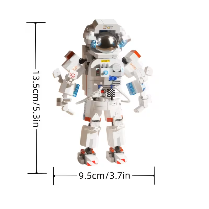 Astronaut – figura za sklapanje od kockica Interaktivna figura astronauta za sklapanje namenjena je deci i ljubiteljima konstrukcionih igračaka. Sastavljanje ove figure podstiče kreativnost, logičko razmišljanje i razvoj fine motorike, dok moderan svemirski dizajn pruža dodatnu zabavu i edukativnu vrednost. Karakteristike proizvoda: Figura astronauta za samostalno sklapanje Izrađena od kvalitetnih i izdržljivih plastičnih kockica Pokretni delovi omogućavaju različite poze Moderan svemirski dizajn sa detaljima Pogodno za igru i izlaganje kao dekoracija Dimenzije gotove figure: Visina: 13,5 cm Širina: 9,5 cm Prednosti: Razvija strpljenje, koncentraciju i kreativnost Podstiče interesovanje za svemir i nauku Odličan poklon za decu i kolekcionare Figura astronauta predstavlja savršen spoj igre i učenja, idealna za sve koji uživaju u sklapanju i istraživanju svemirskih tema.