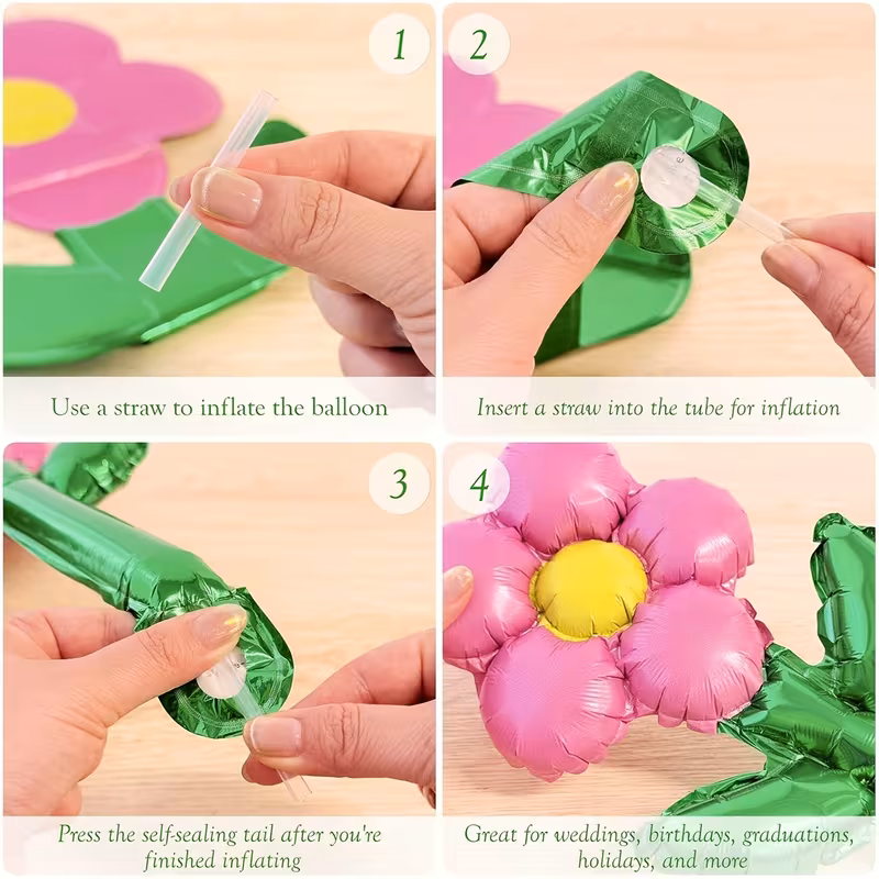 Folija balon u obliku cveta savršen je dekorativni detalj za rođendane, proslave, fotografisanje i tematske zabave. Njegov upečatljiv dizajn i jarka boja unose vedrinu i eleganciju u svaki prostor. Detalji proizvoda: Oblik: Cvet Boja: roze metalik, roze pink, plava, zlatna, crvena Materijal: Folija Dimenzije: 45 x 23 cm Može se puniti vazduhom ili helijumom Balon se prodaje nenaduvan ali se moze naduvati na zahtev kupca (vazduh) Idealan kao poklon za dragu osobu za Dan zaljubljenih, 8. Mart, rodjendan ili kao ukras Cena je za 1 kom