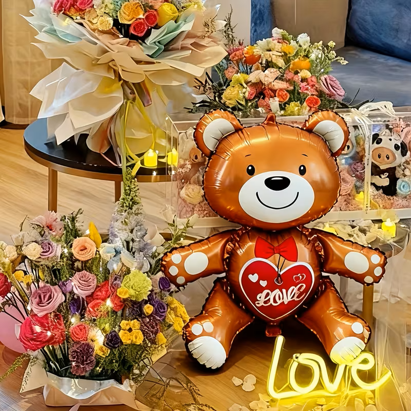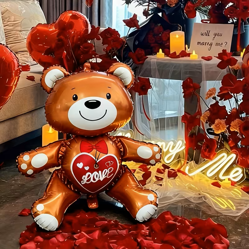 Folija balon u obliku mede koji sedi savršen je izbor za romantične i nežne dekoracije. Na prednjoj strani ima natpis „love“, srce i mašnu, što ga čini idealnim za izražavanje ljubavi i pažnje. Idealan je za: Dan zaljubljenih Rođendane Godišnjice Poklon uz cveće ili čokolade Dekoraciju za fotografisanje Detalji proizvoda: Oblik: Meda koji sedi Boja: Zlatno-braon Materijal: Folija Dimenzije: 64 x 60 cm Pogodan za punjenje vazduhom ili helijumom Balon se prodaje nenaduvan ali se moze naduvati na zahtev kupca (vazduh)