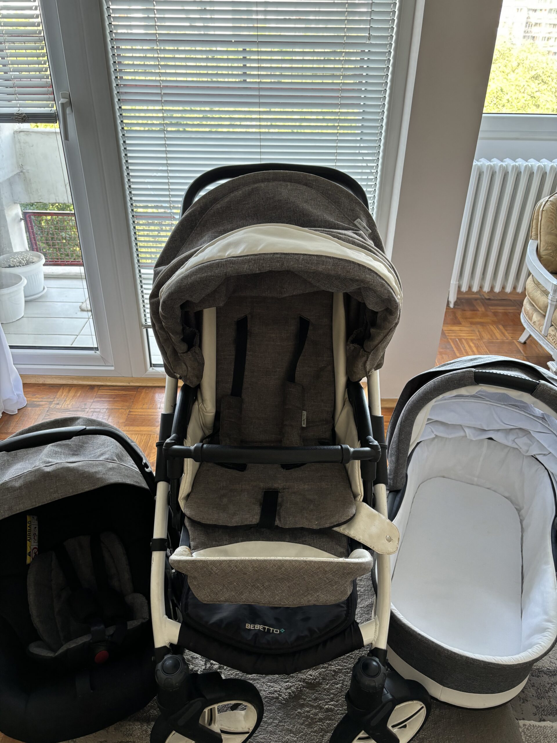 BEBETTO 3u1 polovna kolica sa vidljivim tragovima korišćenja. Uz kolica se dobija i suncobrančić i navlake za hladno vreme. Na trećem delu za sedenje je vidljivo oguljen deo za dečije nogice, vidi se na fotgrafijama. Stabilna i kvalitetna kolica, točkovi – plastična felna, guma na naduvavanje, amortizeri.