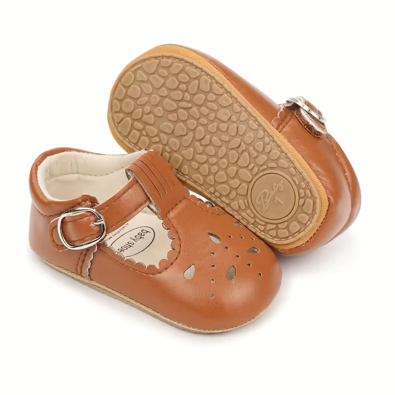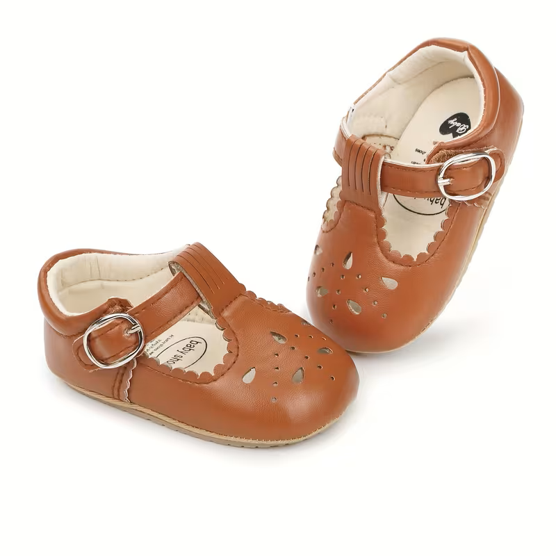 Nehodajuce elegantne i udobne dečje sandalice u braon boji sa motivima cveca. Mekana unutrašnjost pruža prijatan osećaj tokom nošenja, dok kaišić sa čičak-trakom omogućava lako obuvanje i dobro prijanjanje uz stopalo. Fleksibilan đon obezbeđuje stabilnost i sigurnost. Karakteristike: Broj: 19.5 Dužina gazišta: 12 cm Mekana i udobna postava Fleksibilan, neklizajući đon Praktično zatvaranje čičak-trakom Lagan i nežan dizajn Sezona: prolece/jesen Idealne za svakodnevno nošenje, svečane prilike i prve korake