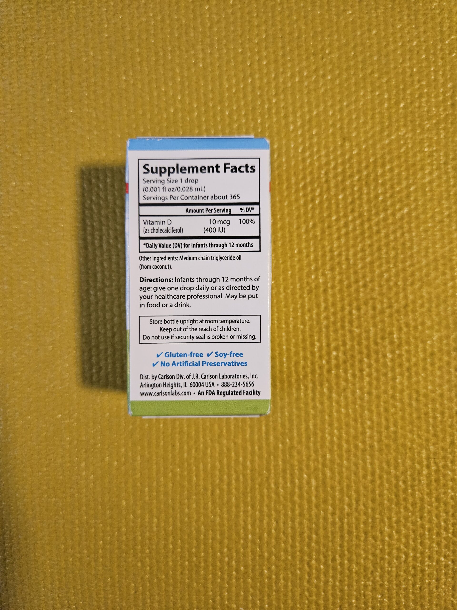 Carlson – Baby’s Super Daily D3 vitamin kapi za bebe, 400 IU (10 mcg) po kapi, količina za godinu dana
