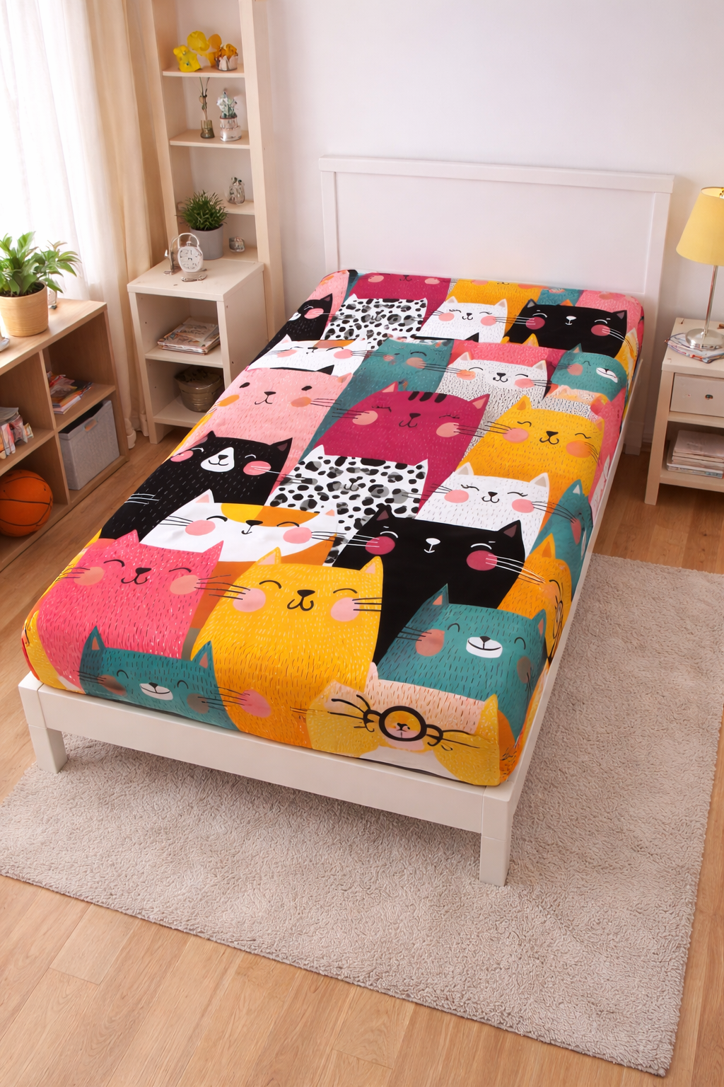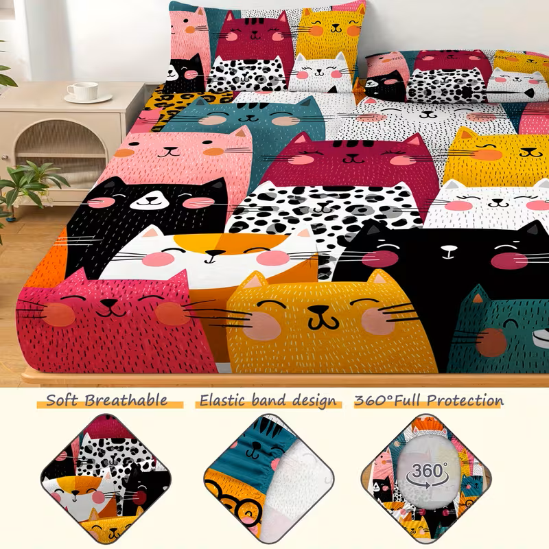 Unesite boje, razigranost i udobnost u dečju ili tinejdžersku sobu uz čaršav sa gumom Veseli Mačkasti Čaršav. Moderan i simpatičan dezen sa stilizovanim mačkama u živim bojama odmah osvežava prostor i čini krevet omiljenim mestom za odmor i igru. Čaršav je dizajniran sa elastičnom gumom po obodu, što omogućava lako postavljanje i savršeno prijanjanje uz dušek, bez klizanja i gužvanja tokom spavanja. Materijal je mekan, lagan i prijatan na dodir, prozračan i jednostavan za održavanje, idealan za svakodnevnu upotrebu. Karakteristike: Čaršav sa gumom Stabilno prijanjanje sa svih strana Razigran i moderan dezen sa mačkama Lako održavanje Dimenzije: Čaršav: 90 x 200 cm Idealan izbor za dečje i tinejdžerske krevete, posebno za ljubitelje veselih dezena i toplih b