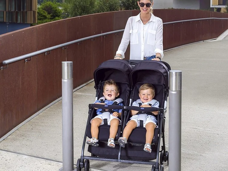KOLICA ZA BLIZANCE: OHlala Twin su lagana, kompaktna, moderna i zadivljujuća kolica za blizance brenda Chicco; lako se guraju, a jedna ručka osigurava lako kretanje čak i jednom rukom.
