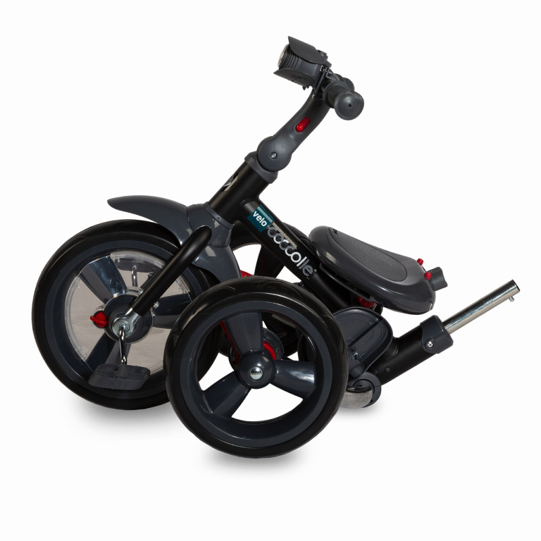 Kompaktan i jednostavan za upotrebu, Coccolle Velo tricikl opremljen je sistemom preklapanja, metalnim okvirom, matičnim upravljačem podesivim po visini, kočnicama na zadnjim točkovima, štitnicima od blata, kombinujući tako visokokvalitetne materijale sa najnovijim tehnologijama iz domena bebi tricikala