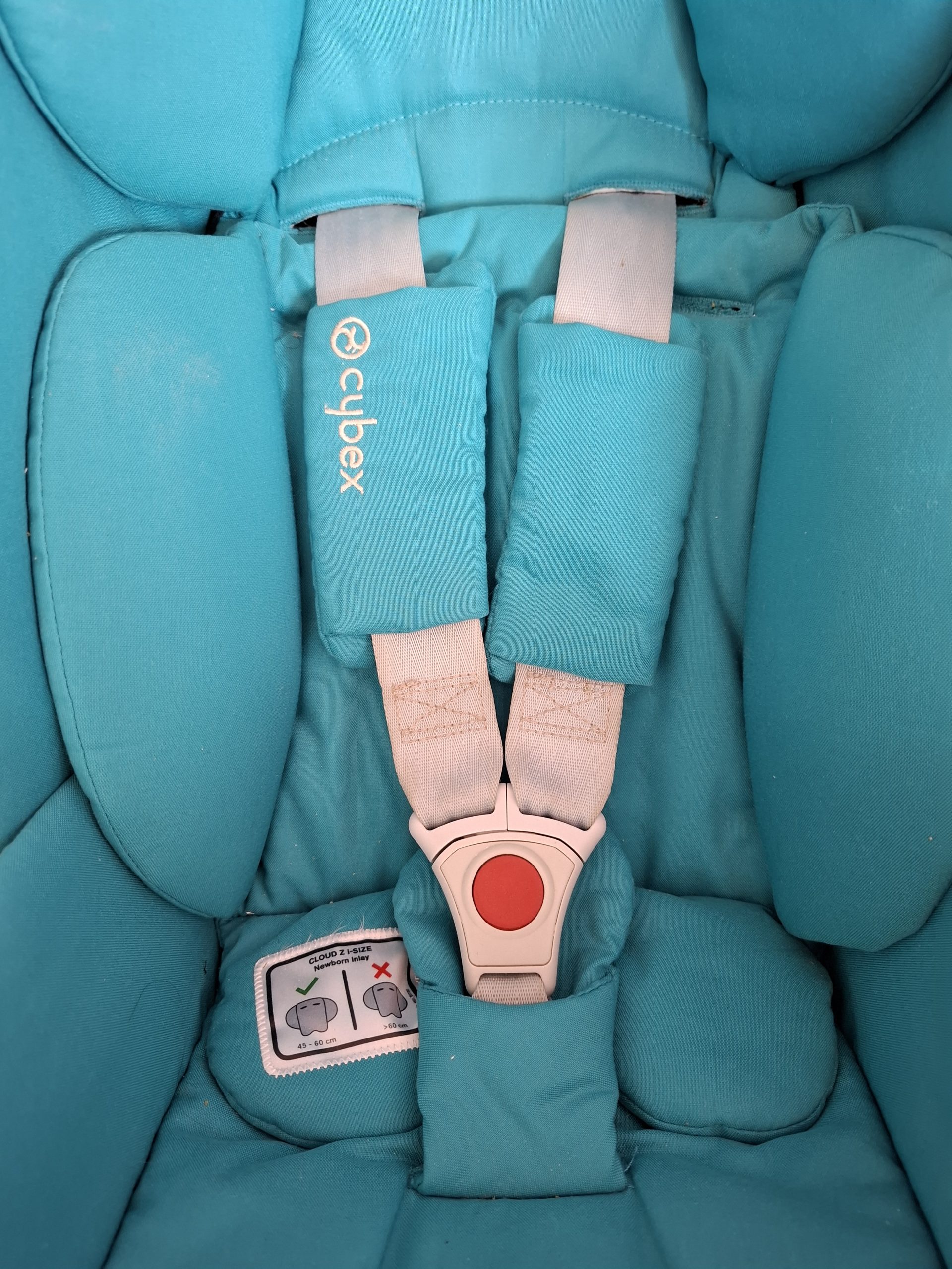Cybex Cloud Z autosedište za bebe od 45–87 cm (do 13 kg). Ima bočnu zaštitu (LSP) i može se postaviti u ležeći položaj van automobila.   Poseduje 11 podešavanja naslona za glavu, XXL tendu sa UVP50+ i kompatibilno je sa Isofix bazom Z (mi smo ga kačili pojasom, bazu možete kupiti odvojeno). Može se kačiti na veliki broj kolica uz odovarajuće adaptere.   Ima par ogrebotina od korišćenja, dubinski oprano