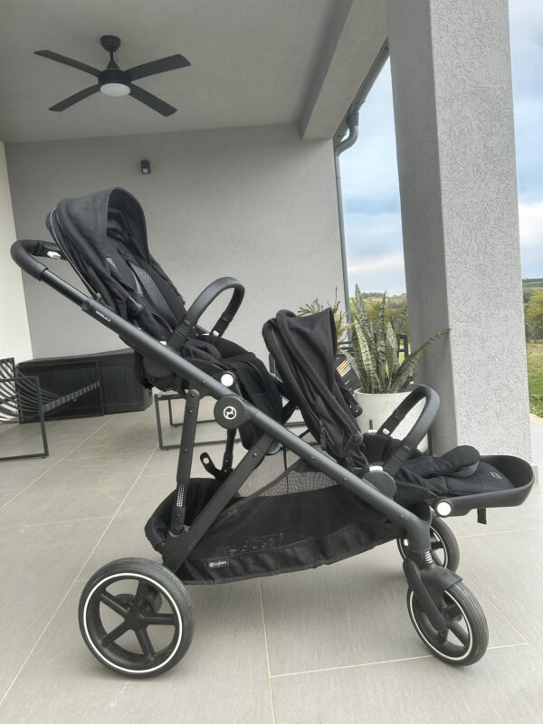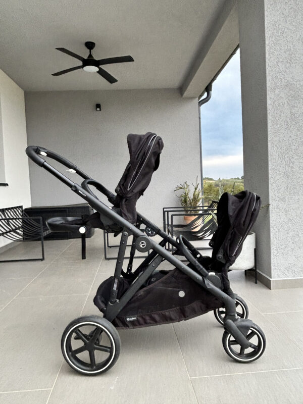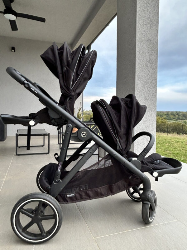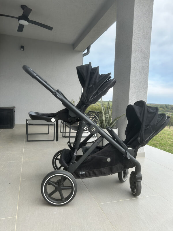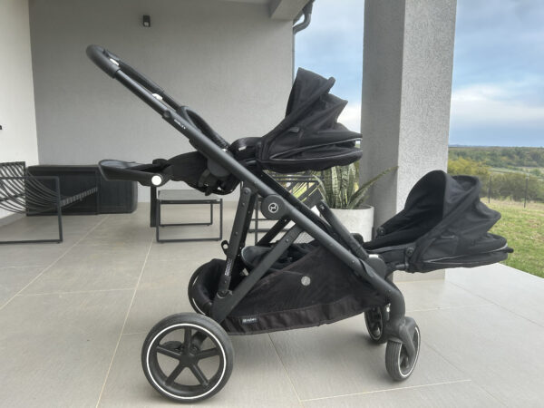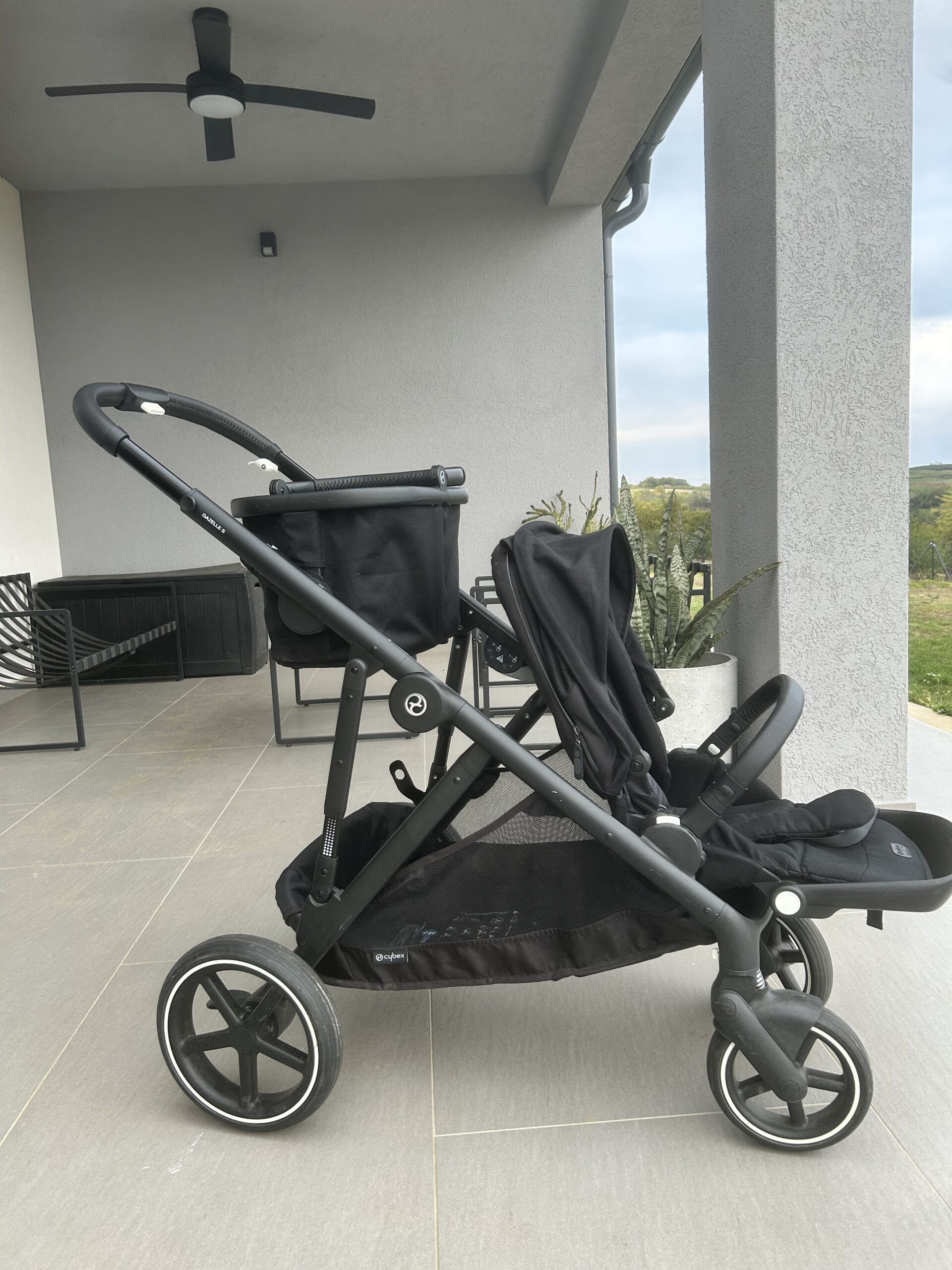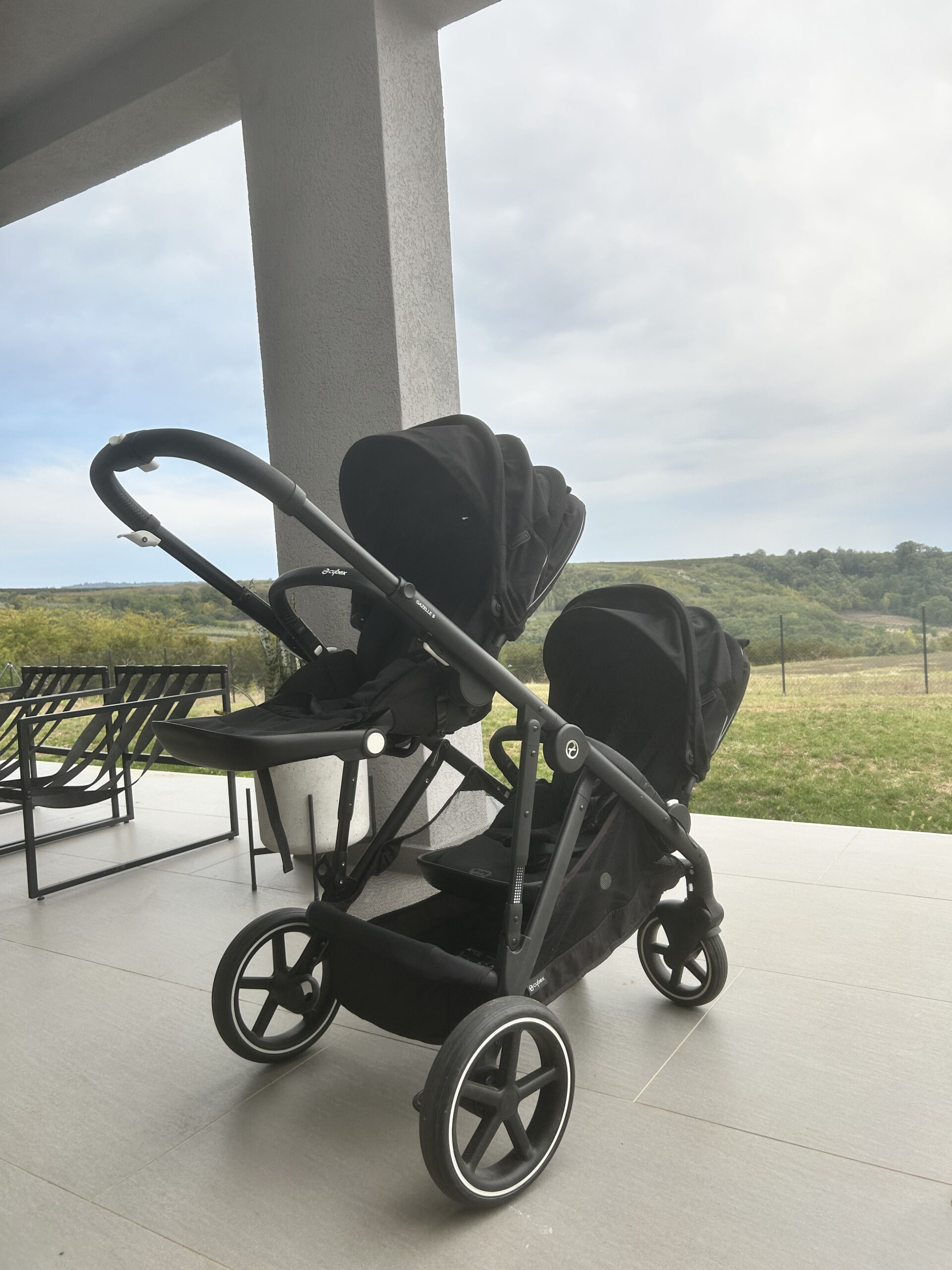 Cybex Gazelle S – crna, dva sportska sedišta + jedno auto-sediste + korpa📍 Lično preuzimanje: Beograd, Mladenovac i okolina Prodajemo Cybex Gazelle S kolica u crnoj boji, sa dva sportska sedišta i korpom za kupovinu.Po našem iskustvu — jedna od najboljih kolica za blizance.Lagana za vožnju, lako se upravljaju i staju svuda kao obična kolica. Mogu se koristiti na više načina dok deca rastu — za jedno dete, dvoje dece različitog uzrasta, ili blizance.Kompatibilna su sa većinom Cybex autosedištima, jedno Cybex Aton 5 auto-sedište sa adapterima uracunato u cenu. Sedišta su očuvana, bez fleka i izbledelih delova. Tragovi korišćenja samo na točkovima i ramu. Više o modelu možete pogledati ovde:https://www.cybex-online.com/en/us/gold-gazelle-s.html