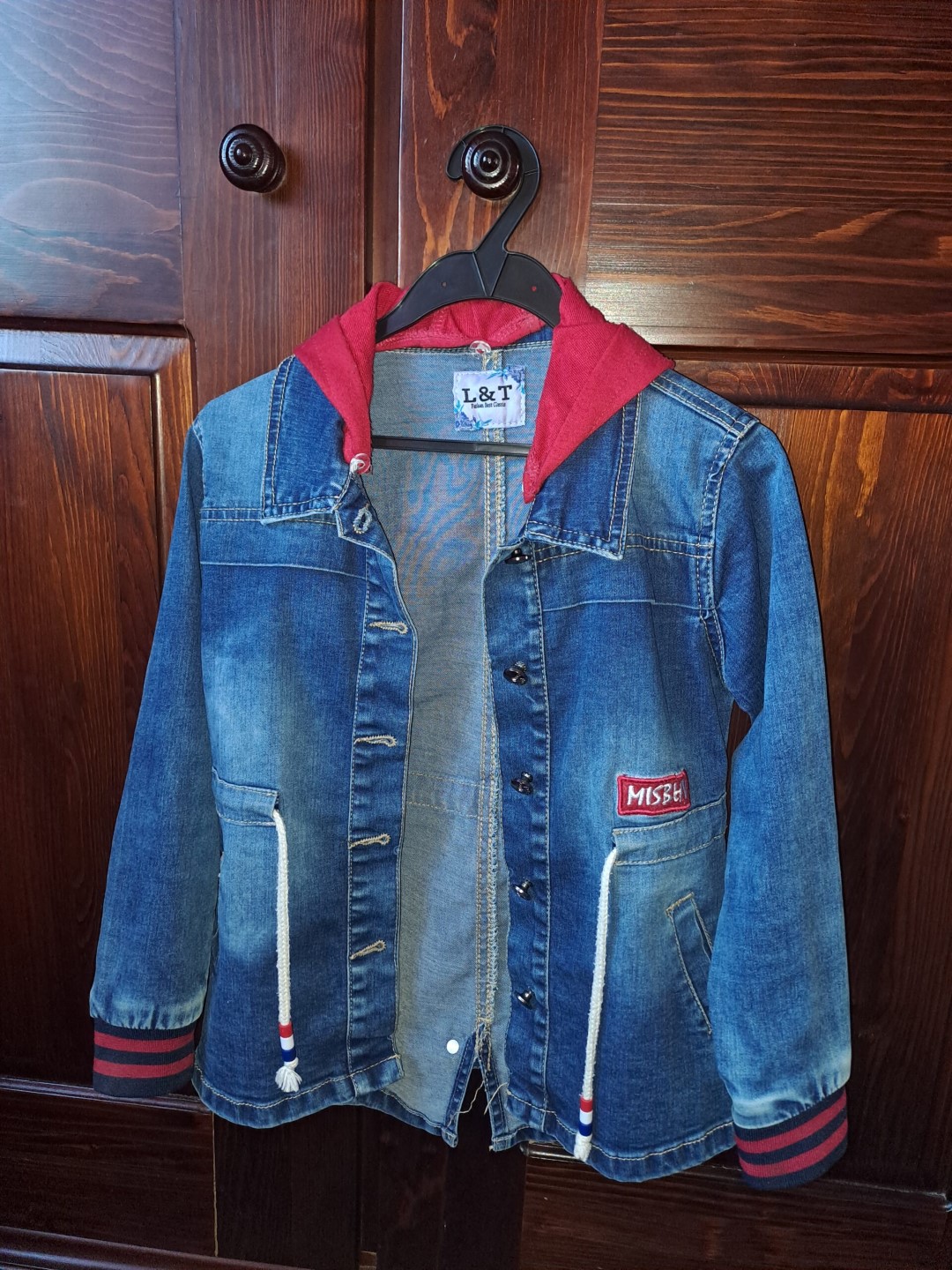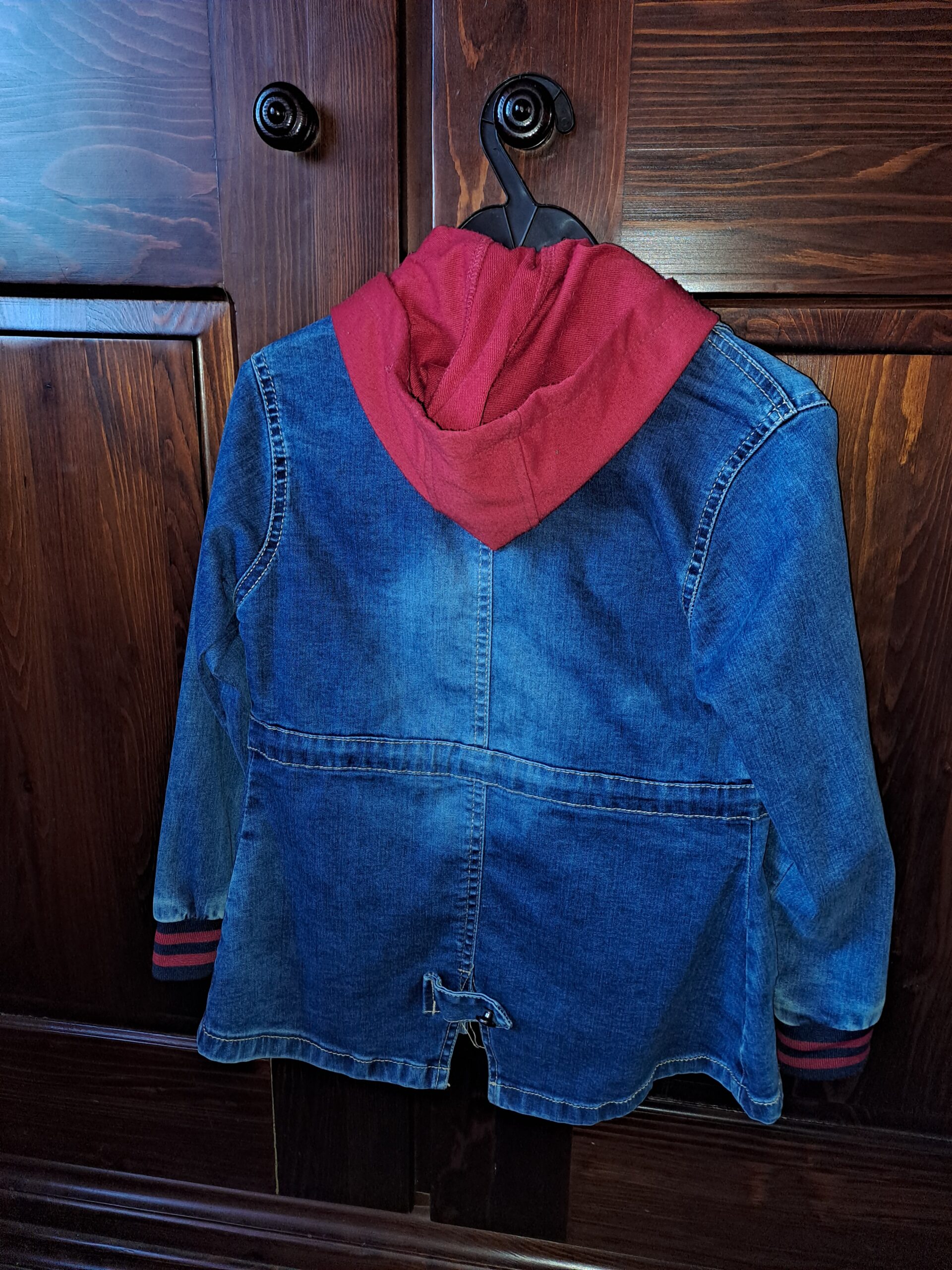 Dečija teksas jakna sa kapuljačom. Uzrasta od 6 godina. Jakna nema oštećenja.