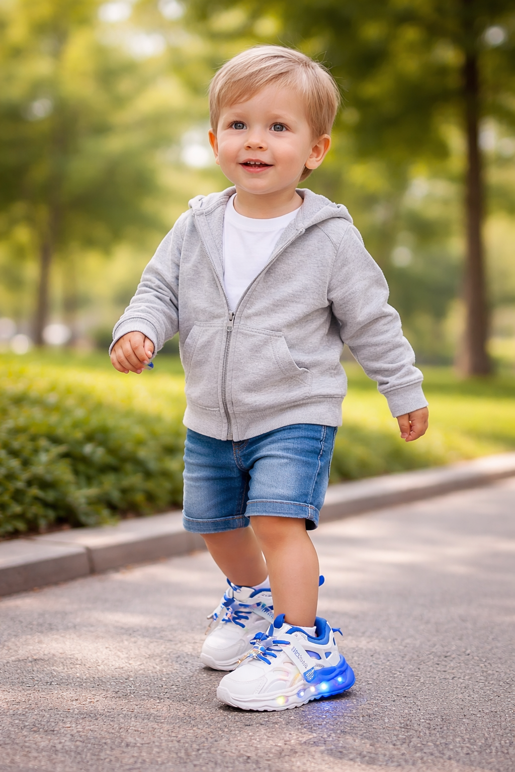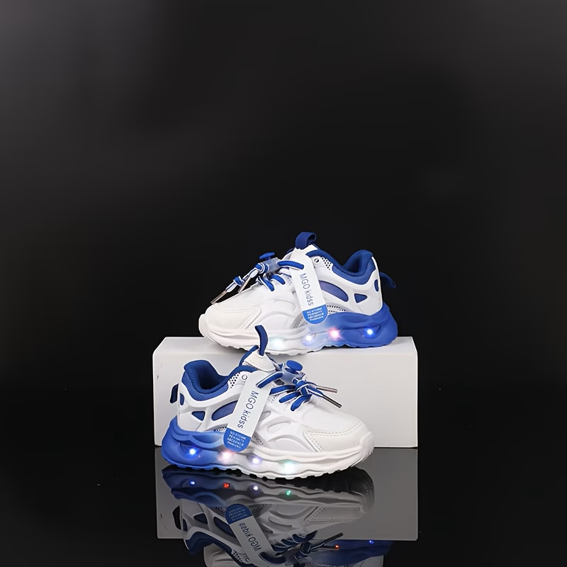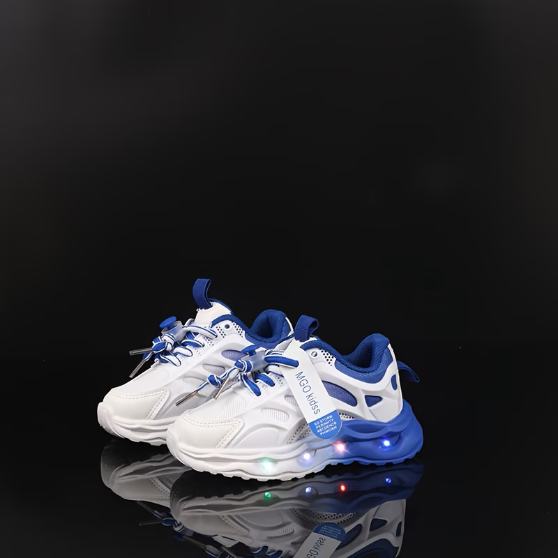 Dečije patike sa svetlećim đonom – plavo-bele Moderne i udobne patike za mališane koje će sigurno privući pažnju zahvaljujući svetlećem đonu. Idealne su za svakodnevno nošenje, igru i šetnju, a istovremeno pružaju dobru stabilnost i udobnost stopalu. ✔ Broj: 21.5 ✔ Dužina gazišta: 13 cm ✔ Svetleći đon pri hodu ✔ Lagan i fleksibilan materijal ✔ Atraktivan sportski dizajn u plavo-beloj boji ✔ Jednostavno obuvanje i skidanje Savršen izbor za aktivnu decu koja vole da budu primećena!
