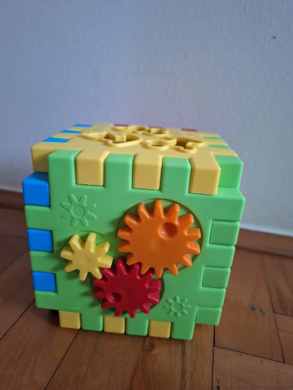 Didaktička kocka sa geometrijskim oblicima za zabavu, ali i deukaciju mališana.