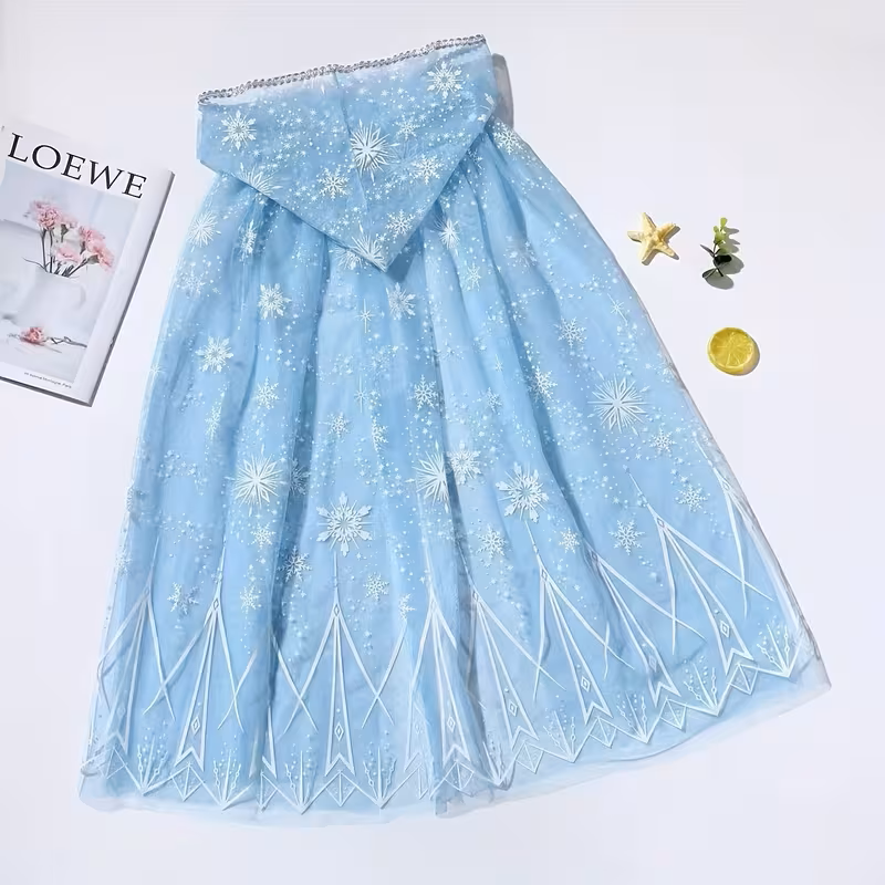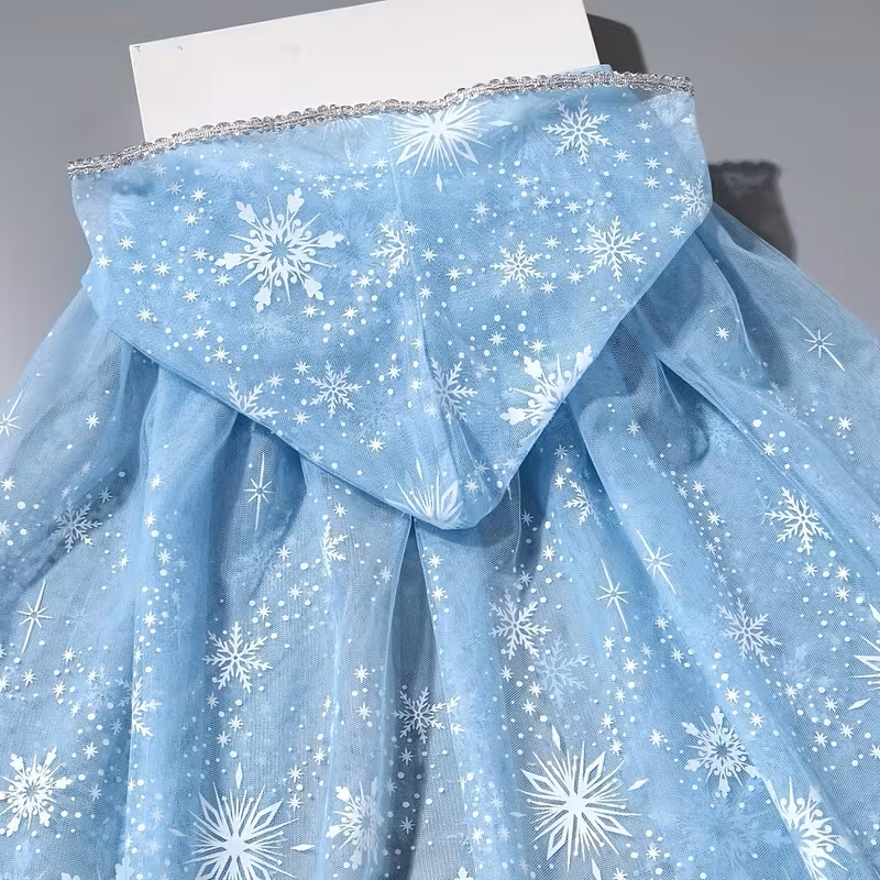 Prelep ogrtac za devojčice sa kapuljačom, inspirisan Frozen (Elsa) stilom. Plašt je u nežnoj svetloplavoj boji, bogato ukrašen motivima pahulja koji mu daju bajkovit i elegantan izgled, idealan za male princeze. Lagan i udoban materijal omogućava lako nošenje i lepo padanje, dok kapuljača pruža dodatnu toplinu i poseban vizuelni efekat poput pravog bajkovitog plašta. Savršen je za igru, kostimirane proslave, rođendane, fotografisanje ili kao poklon. Dimenzije: Širina: 145 cm Dužina: 75 cm Velicina: univerzalna Idealan izbor za devojčice koje vole Frozen i sanjaju da se osećaju kao prava ledena princeza. Snalice Pahuljice – 2 kom Snežna Magija – šnalice u obliku pahuljice Dodajte zimski sjaj svakoj frizuri uz ove prelepe, kristalno svetlucave šnalice u obliku snežnih pahulja. Idealne su za devojčice koje obožavaju Frozen motiv, praznične događaje, rođendane ili jednostavno – svaki dan kada žele da zablistaju! • Set od 2 metalne šnale • Prelepi kristalni detalji koji se presijavaju na svetlu • Čvrst i siguran mehanizam – ne klizi sa kose • Savršene za sve tipove kose • Odličan dodatak za zimsku fotografiju, vrtićke priredbe i svečane kombinacije Učinite zimsku sezonu još bajkovitijom uz ove šnalice koje svaku malu princezu pretvaraju u pravu Snežnu kraljicu!