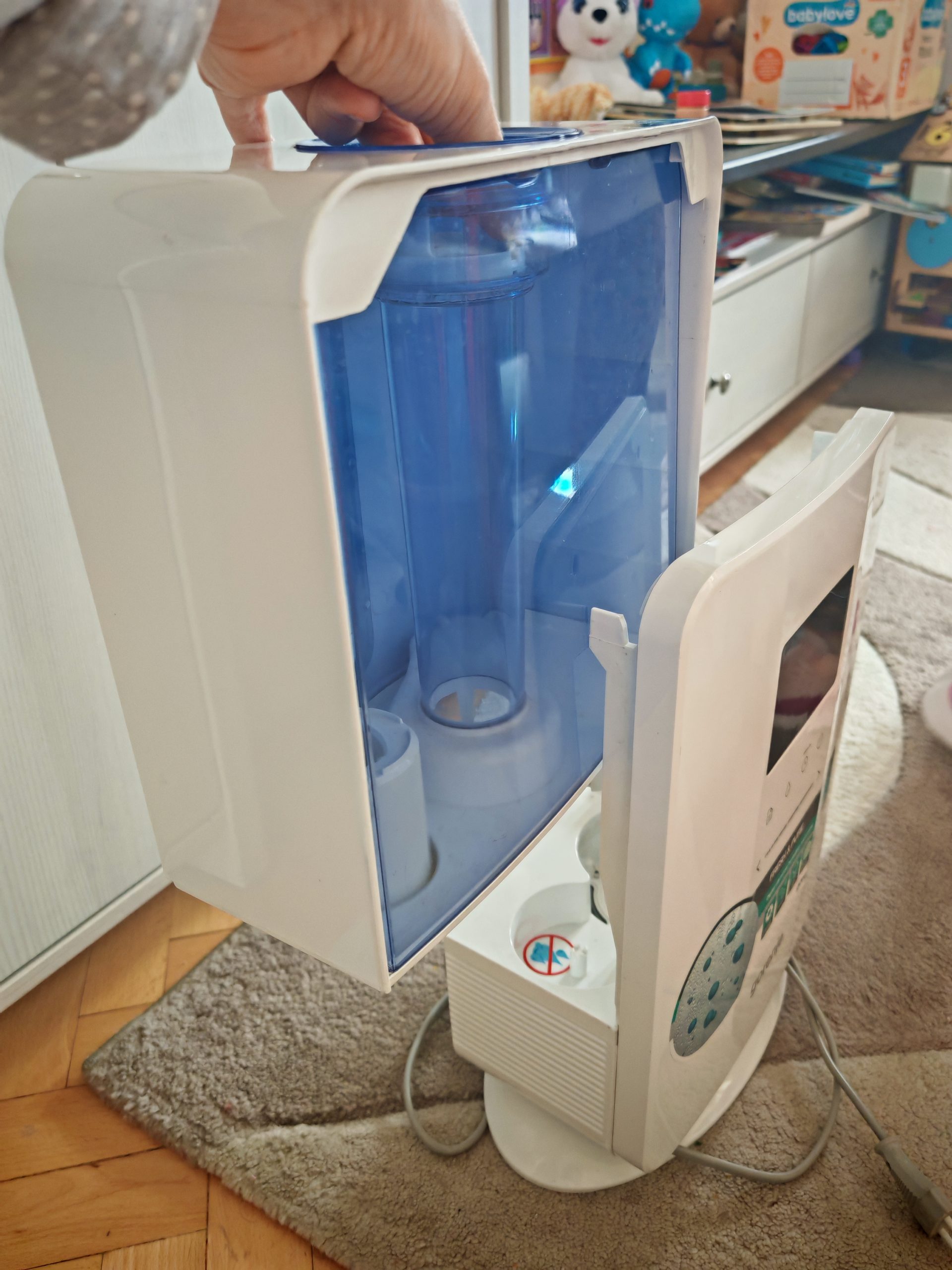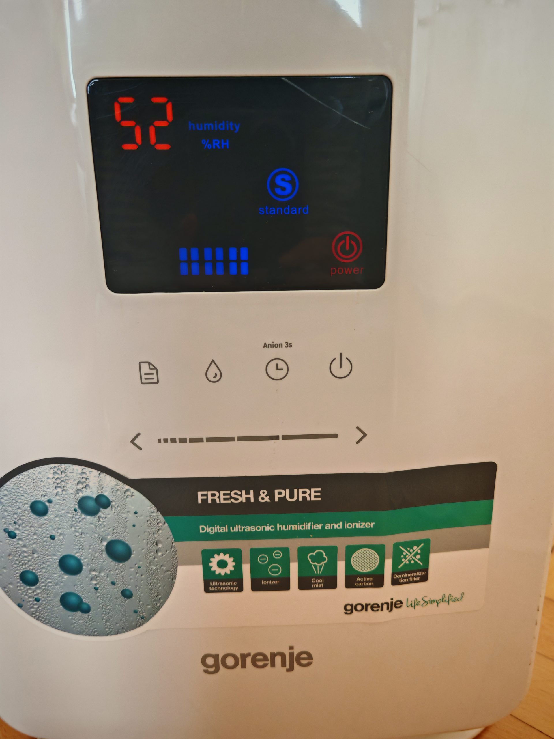 Ovlazivac vazduha kratko koriscen, ali veoma koristan za suv vazduh. Ima opciju za podesavanje nivoa vlaznosti vazduha, sleep mode, necujan je. Ovlazivac je kao nov, od znakova koriscenja ima malu ogrebotinu na displeju.