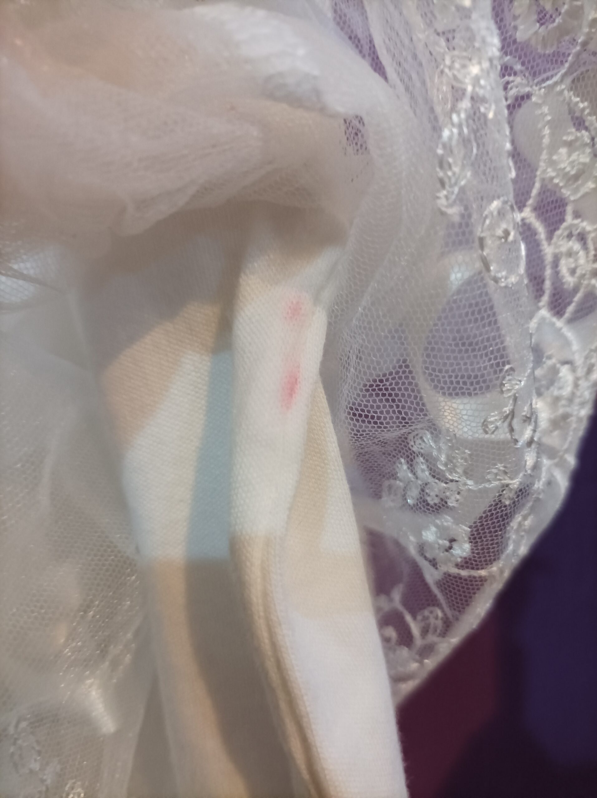 Svečana haljina za bebe, bela. Ima ispod tila malu roze fleku, skoro neprimetnu. Veličina 74 (9m).