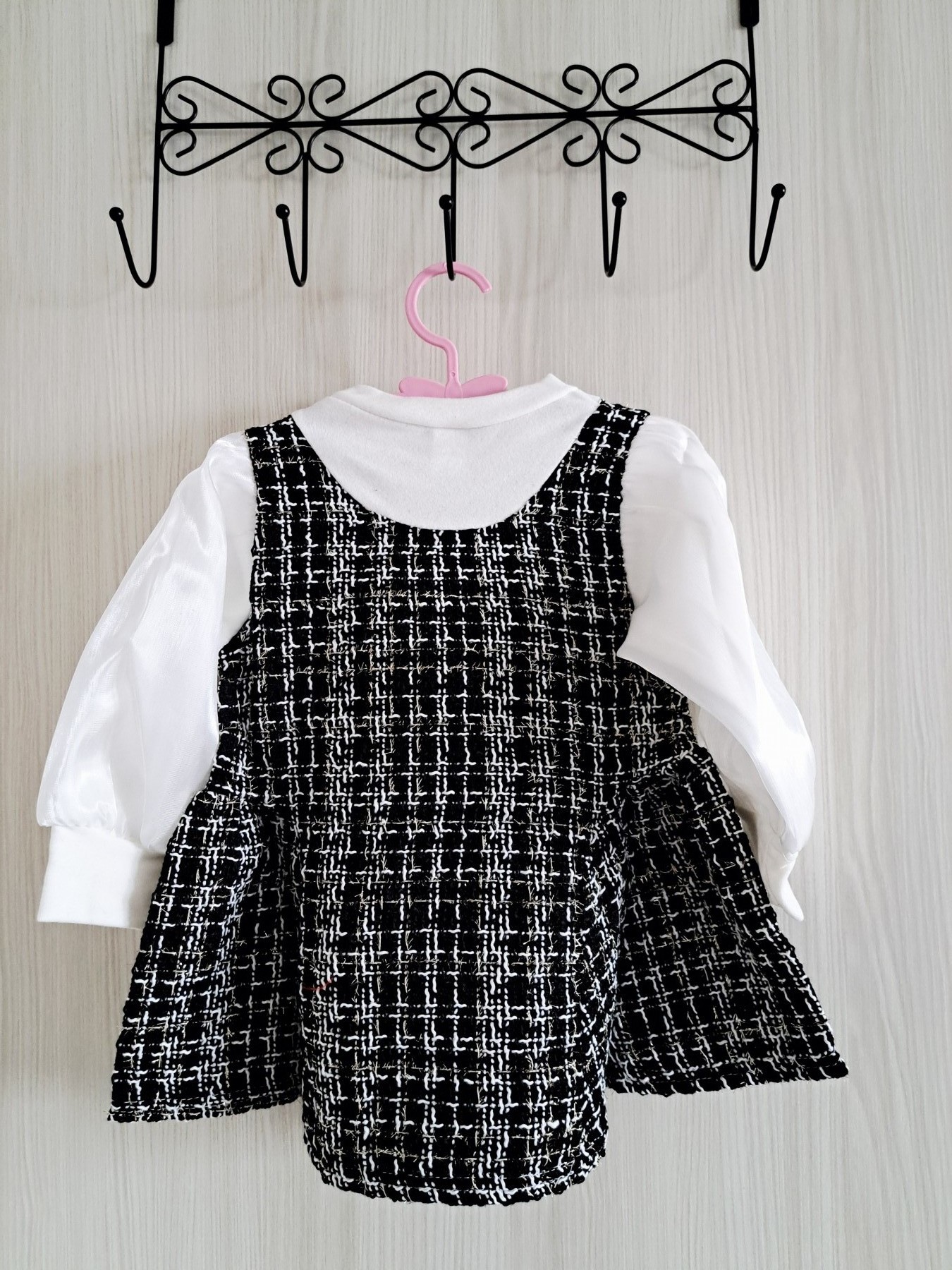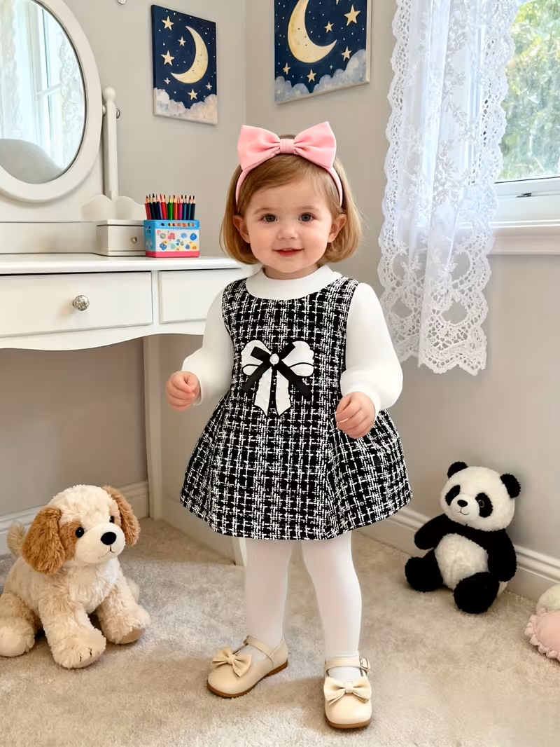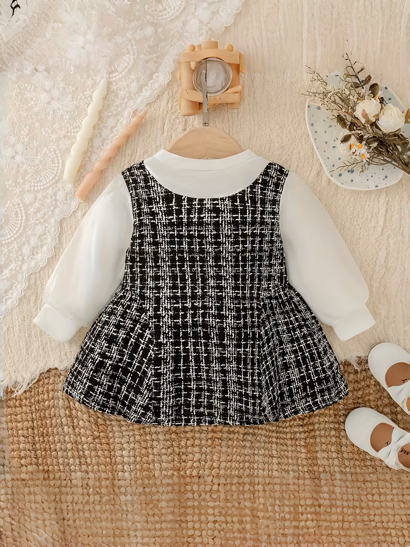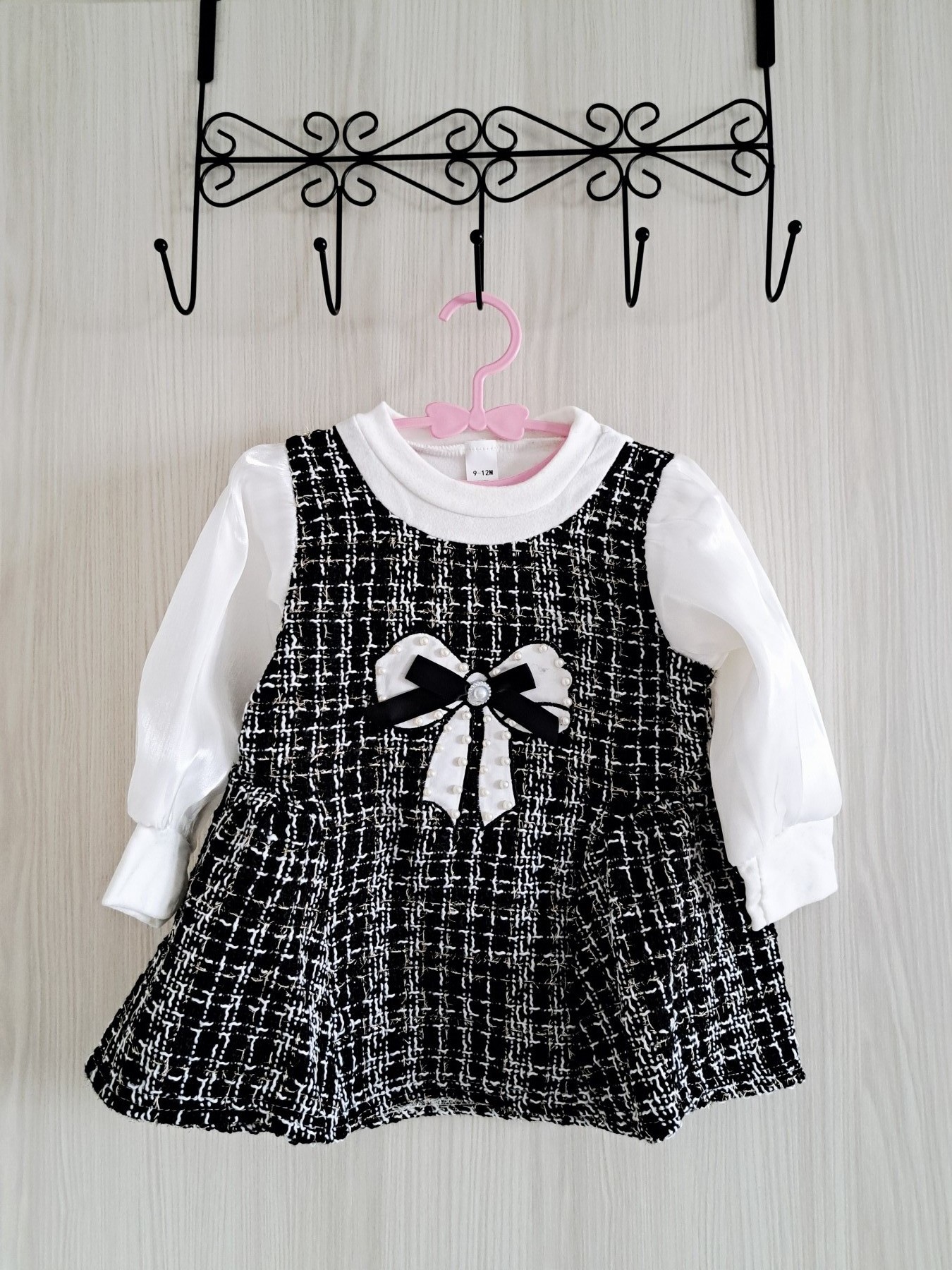 Elegantna haljinica za bebe devojčice, savršena za posebne i svečane prilike Ova sofisticirana haljinica kombinuje klasičnu crnu boju sa nežnim belim detaljima. Gornji deo je izrađen od teksturiranog materijala, dok su rukavi od laganog, svilenkastog i providnog materijala sa postavom, koji haljinici daju posebnu lakoću i eleganciju. Prednji deo krasi nežna bela mašna sa biserima koji dodatno naglašavaju moderan i otmen stil. Detalji proizvoda: Veličina: 80 Uzrast: 9–12 meseci Rukavi: providni sa postavom, svilenkastog izgleda Boja: crna sa belim detaljima Stil: elegantna, svečana Idealan izbor za rođendane, proslave, fotografisanja i sve posebne trenutke kada želite da vaša devojčica izgleda posebno i nežno.