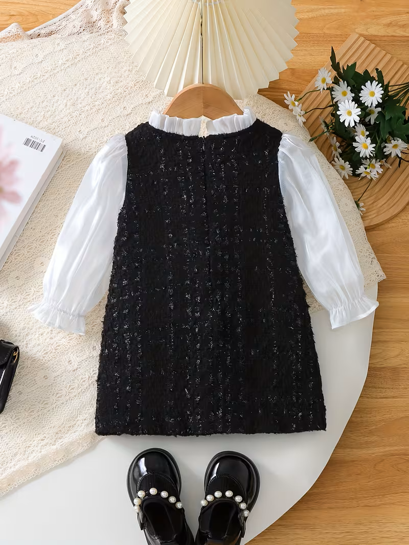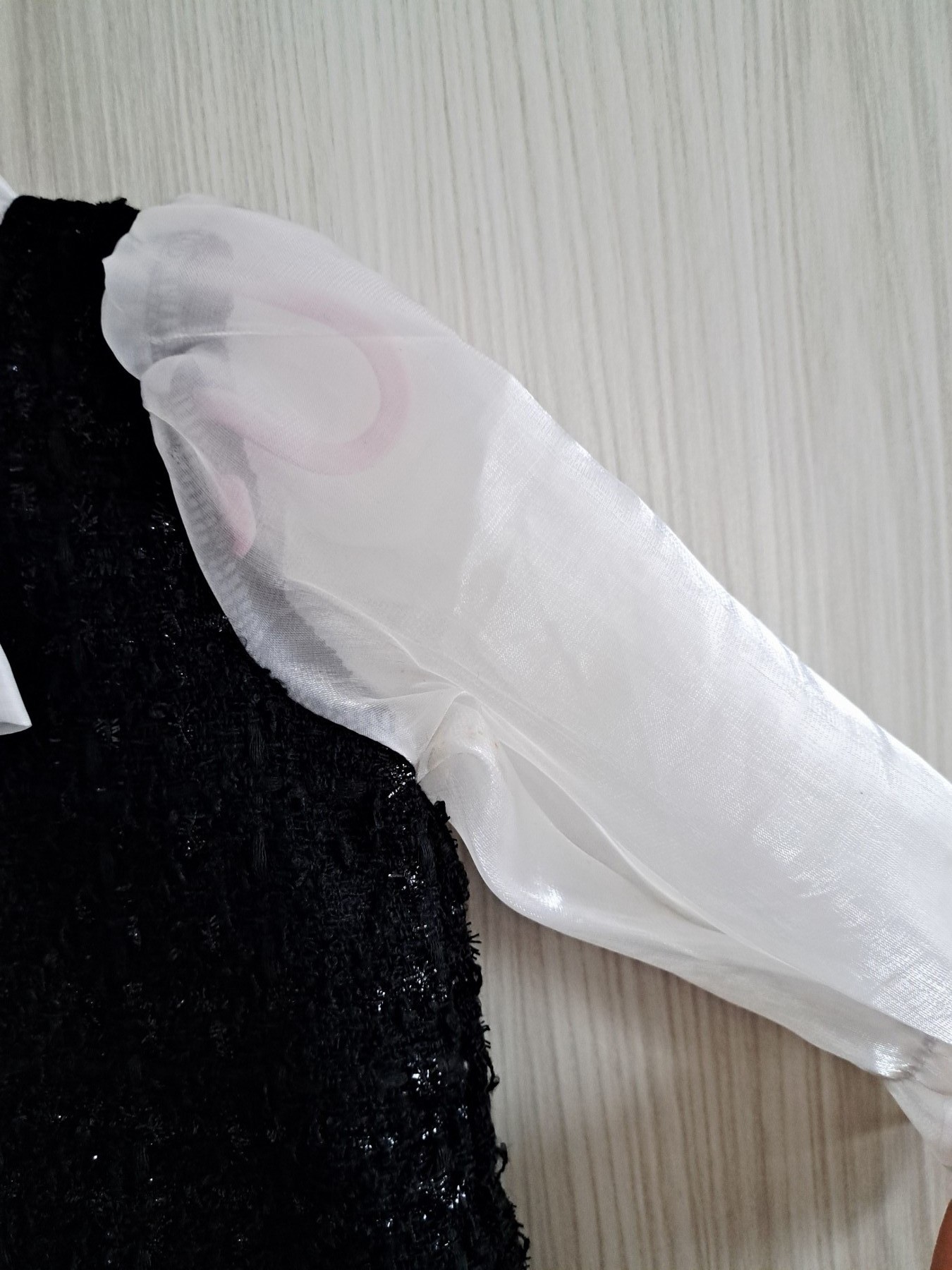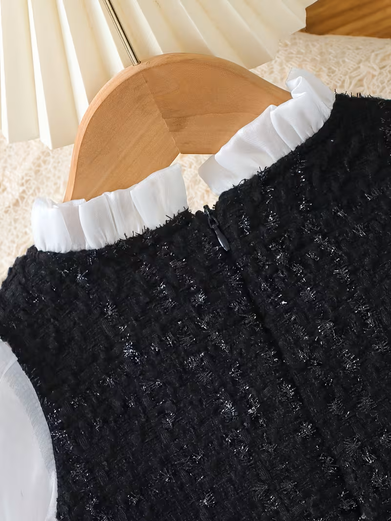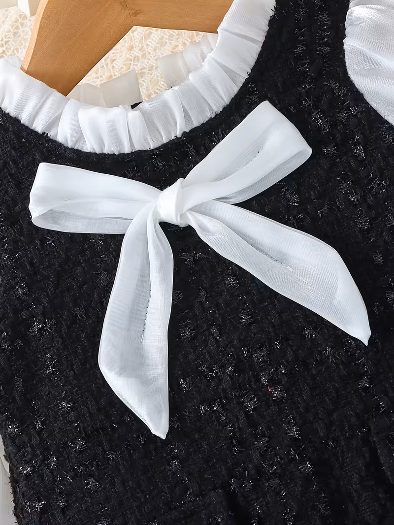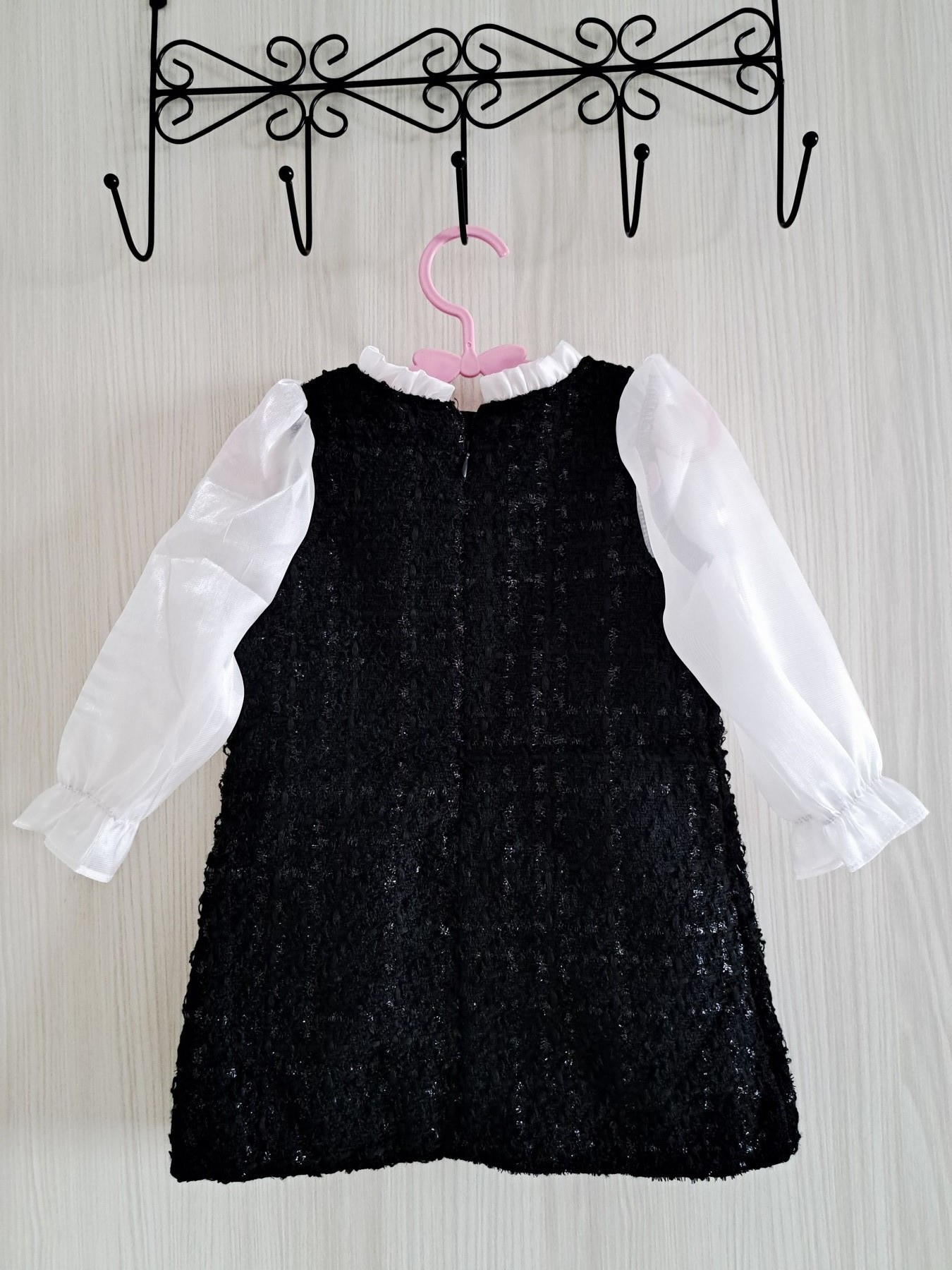 Elegantna haljinica za bebe devojčice, savršena za posebne i svečane prilike Ova sofisticirana haljinica kombinuje klasičnu crnu boju sa nežnim belim detaljima. Gornji deo je izrađen od teksturiranog materijala, dok su rukavi od laganog, svilenkastog i providnog materijala, koji haljinici daju posebnu lakoću i eleganciju. Prednji deo krasi nežna bela mašna, a mali ukrasni džepovi dodatno naglašavaju moderan i otmen stil. Haljinica se zakopčava pozadi rajsferšlusom, što omogućava lako oblačenje i udobnost tokom nošenja. Detalji proizvoda: Veličina: 80 Uzrast: 9–12 meseci Zakopčavanje: rajsferšlus pozadi Rukavi: providni, svilenkastog izgleda Boja: crna sa belim detaljima Stil: elegantna, svečana Idealan izbor za rođendane, proslave, fotografisanja i sve posebne trenutke kada želite da vaša devojčica izgleda posebno i nežno.