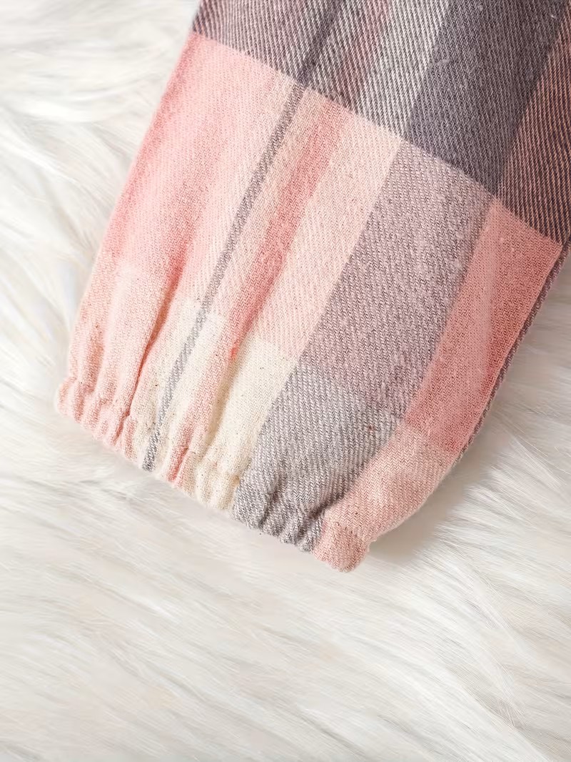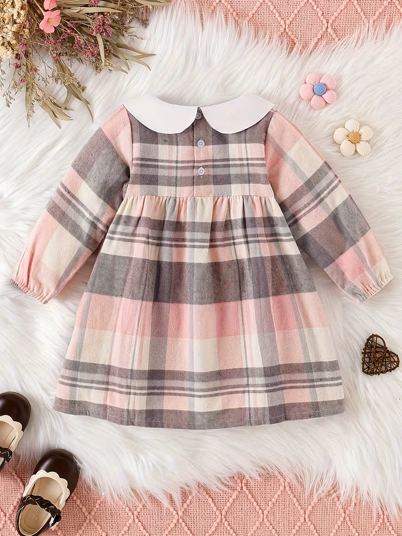 Zimska haljinica za bebe devojčice – 12-18 meseci (veličina 86) Uživajte u udobnosti i stilu vaše male princeze sa ovom prelepom zimskom haljinicom. Haljinica je roze sivo karirane boje, savršena za praznične i svakodnevne prilike. Ima elegantnu belu kragnu i masnicu napred koji dodaju nežan i sladak izgled. Zakopcava se dugmicima pozadi. Dugi rukavi sa gumicom na kraju čuvaju toplinu, dok je materijal mekan i nežan, prijatan za osetljivu kožu bebe. Idealna je za zimske dane, igre i posebne trenutke, kombinujući udobnost i šarm u jednom.