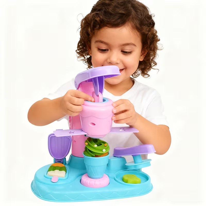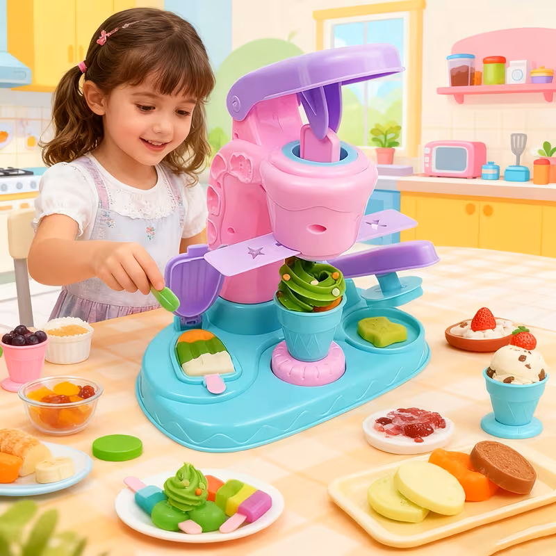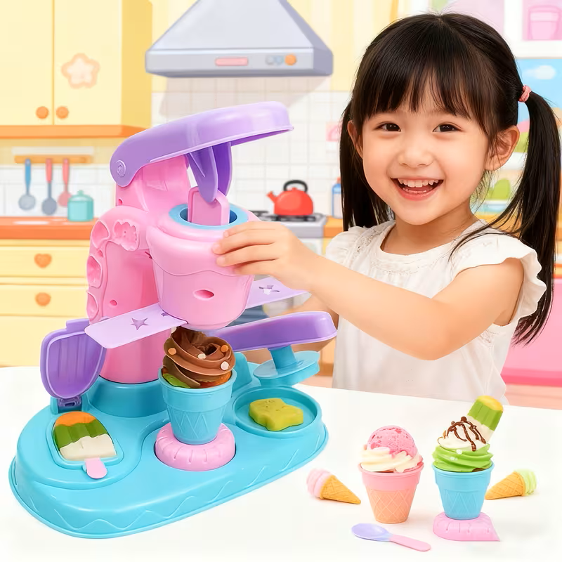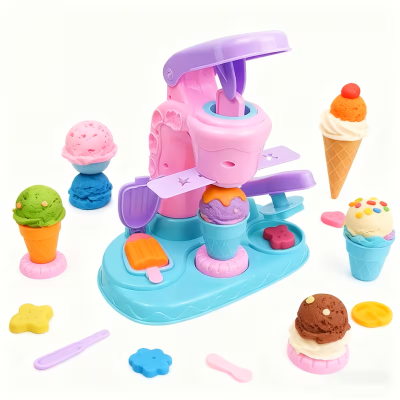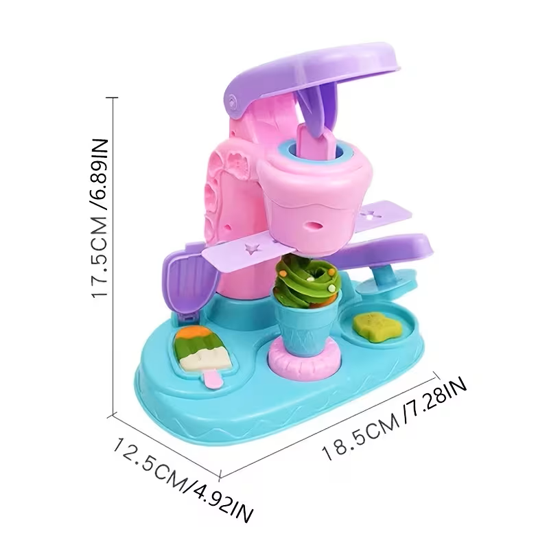 Igračka aparat za pravljenje sladoleda – kreativna igra za male poslastičare Ova preslatka igračka u pastelnim bojama omogućava deci da se igraju pravljenja sladoleda od plastelina baš kao pravi majstori! Uz jednostavan mehanizam za pritiskanje i razne dodatke, mališani mogu da kombinuju kugle, kornete i oblike, razvijajući maštu i finu motoriku. Karakteristike: Aparat za „pravljenje“ sladoleda sa ručkom za lako korišćenje Uključeni dodaci: korneti, kugle sladoleda, štapići i dekoracije, plastelin (12 kom) Podstiče kreativnu igru, koordinaciju ruku i očiju i ulogu igre Bezbedni, glatki ivice, prilagođeno deci Idealno za igru kod kuće, samostalno ili sa drugarima Dimenzije aparata: Visina: 17.5 cm Dužina: 18.5 cm Širina: 12.5 cm Savršen poklon za decu koja vole igru uloga, kuhinjice i slatke poslastice – sati zabave zagarantovani!