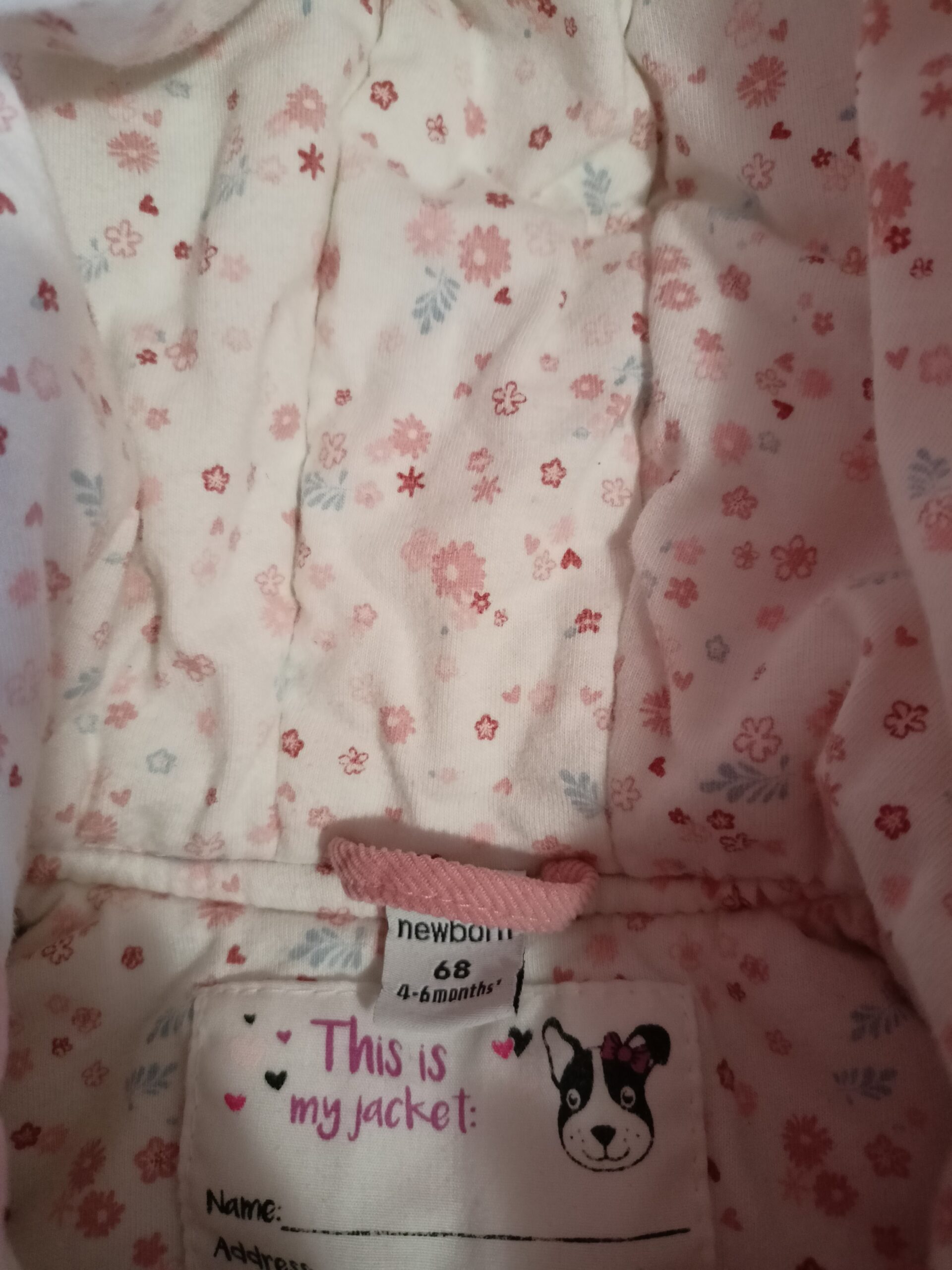 Okvirna cena dostave: 400 RSDSomot jakna za bebe, veličine 68 roza boja.