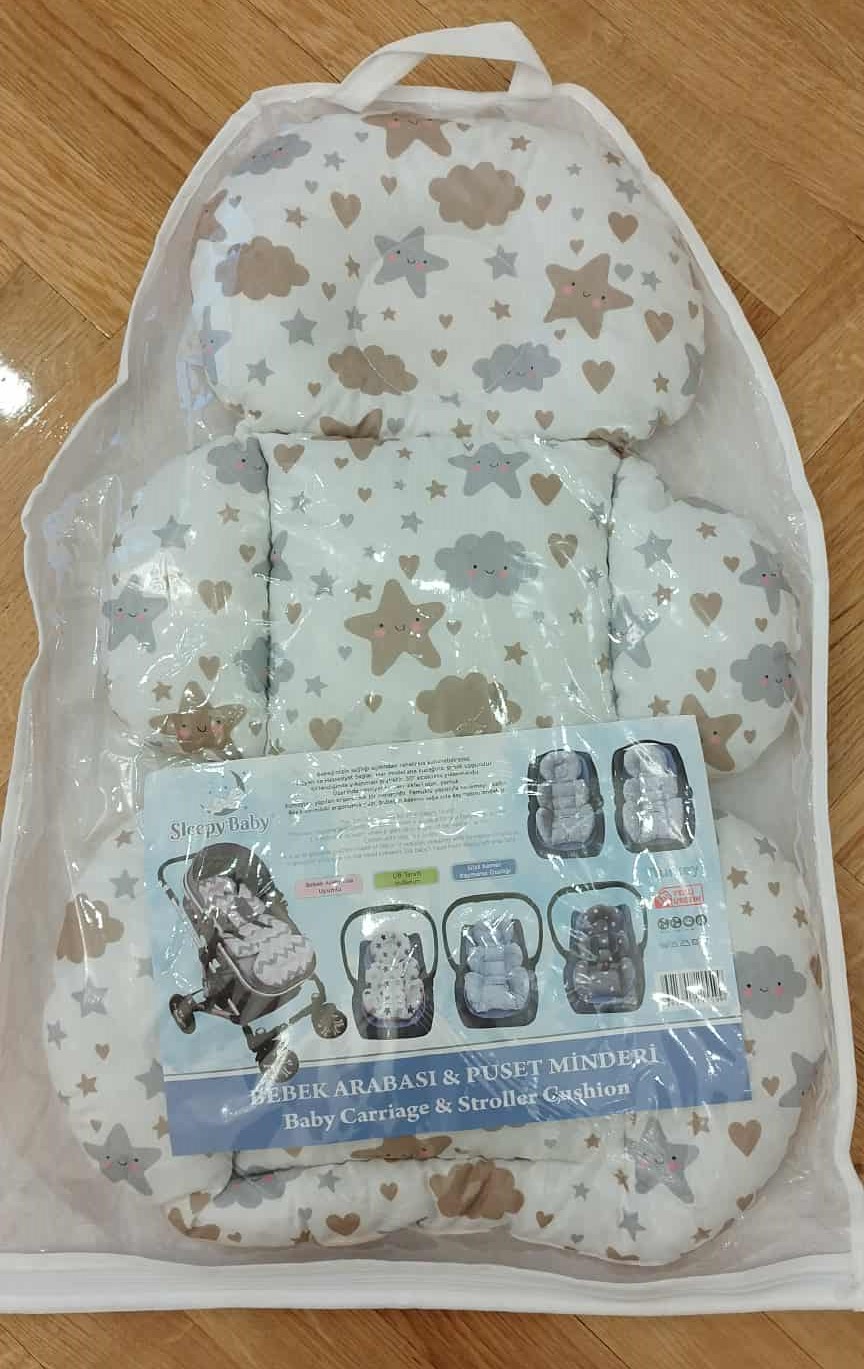 Jastuk za kolica za bebe dizajniran da obezbedi dodatnu udobnost i sigurnost vašem detetu tokom vožnje. Sa šarenim, nežnim uzorkom oblaka, zvezda i srca, stvara prijatnu atmosferu. Lako se postavlja u kolica ili stolicu, pružajući mekšu i udobniju surfacesku podlogu za bebe, pogodan je za svakodnevnu upotrebu i lako održavanje. Savršen dodatak za roditelje koji žele da obezbede optimalan komfor svojoj bebi.