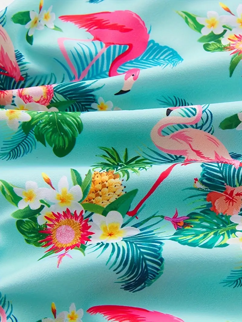 Presladak jednodelni kupaći za devojčice Savršen za leto, more i bazen! Veseli tropski dezen sa flamingosima i cvetićima Slatki karneri na ramenima + mašnica pozadi Udoban, lagan i prijatan za nošenje Idealan za plažu i svakodnevno brčkanje Učinite leto još lepšim uz ovaj neodoljivi kupaći! Velicina: 92/98 2-3 god