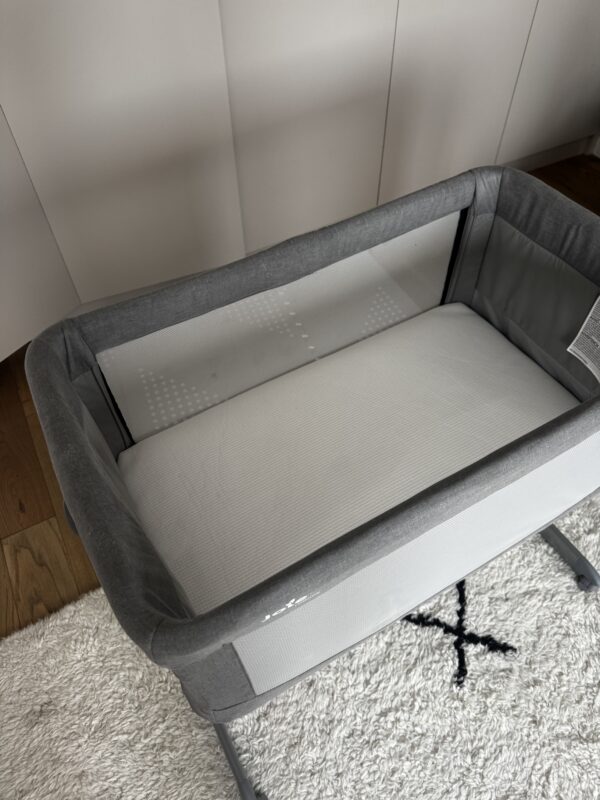 Upotreba: od rođenja do 9 kg. -Kolevka ima blagi nagib kako bi pomogao vašem mališanu da udobno svari svoju užinu pred spavanje. -Uz kolevku dobijate čvrst, ali udoban dušek prekriven mrežicom. -Nikada ne morate da brinite o pregrevanju zahvaljujući duplim mrežastim prozorima sa obe strane „Roomie” kolevke, koji obezbeđuju dovoljno ventilacije. -Zaobljeni oblik kolevke sa mekim postavljenim stranama za dodatnu udobnost i zaštitu. -Omogućava vam da spavate pored vaše bebe, bez deljenja kreveta, za sve prednosti blizine bez brige o bezbednosti. -Podignite i spustite kliznu bočnu ploču, samo jednom rukom, za lak pristup vašem detetu. -Sa nogama koje su sklopive i podesive u 11 visina, odgovara svim krevetima. -Pričvršćuje se za vaš krevet jednostavnim kaišem i kopčom, tako da imate dobro prianjanje koje će ostati tokom noći. -Navlaka dušeka se za tren može ukloniti i oprati u mašini. -Lagani, ali čvrsti aluminijumski okvir daje vam izdržljivost koja vam neće slomiti leđa. -Kolevka se zaključava jednom rukom, samo jednim pritiskom na dugme. -Četiri točka sa zaključavanjem olakšavaju pomeranje krevetića i prekriveni su gumom kako bi vaš pod bio bez ogrebotina. Dimenzije: D 95 x Š 68,5 x V 66-81 cm. Težina proizvoda: 11 kg. Na poklon dolaze i 4 ukrojena carsava i nepromociva podloga.