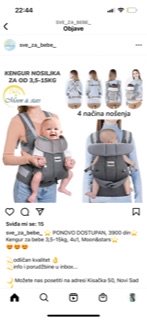 Okvirna cena dostave: 500 RSDKengur nosiljka za bebe od rođenja, korišćena jako malo.