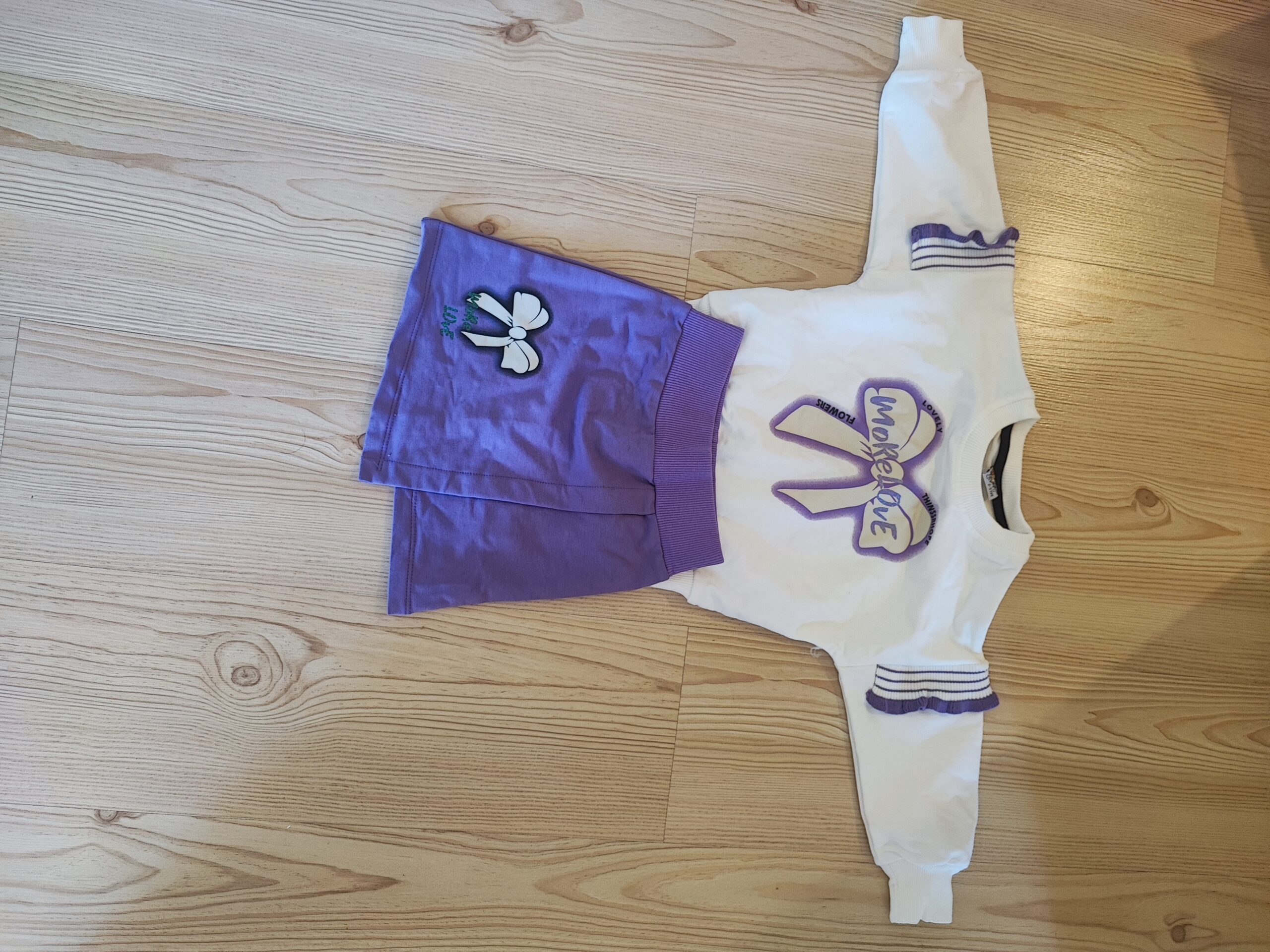 Komplet se sastoji od suknjice i duksa. Veličina za uzrast od 2-3 godine. Novo,bez etikete.