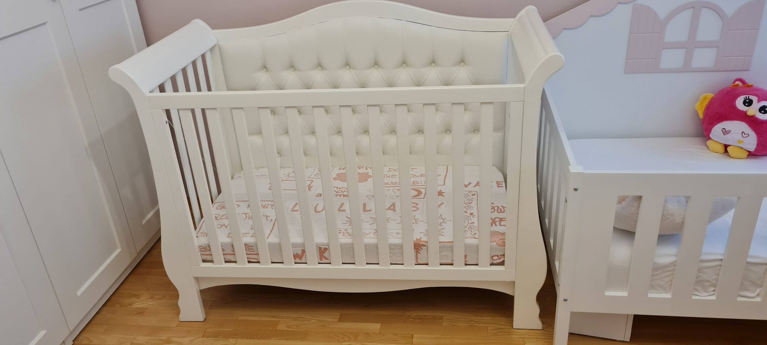 Prodajemo drveni tapacirani krevetac. Koristili smo ga za dete koje je preraslo krevetac. Ploča ispod dušeka dodatno ojačana sa drvenim gredama. Krevetac je od kombinacije punog drveta i medijapana. Prednja ograda kreveca se demontira pa se krevrtac može koristiti kao sofa za sedenje kada dete odraste. Dimenzije krevrca: 140x69x110 (šxdxv) U cenu uključen i dušek 120x60cm kupljen u Dormeo prodavnici, sa fabričkom nepromočivom navlakom i dve strane, mekšom i tvrdjom. Nameštaj nije na rasklapanje, kabast je, treba imati u vidu zbog transporta. Lokacija je na Novom Beogradu. Transport po dogovoru. Imamo I komodu za presvlačenje u istom stilu ko je zainteresovan.