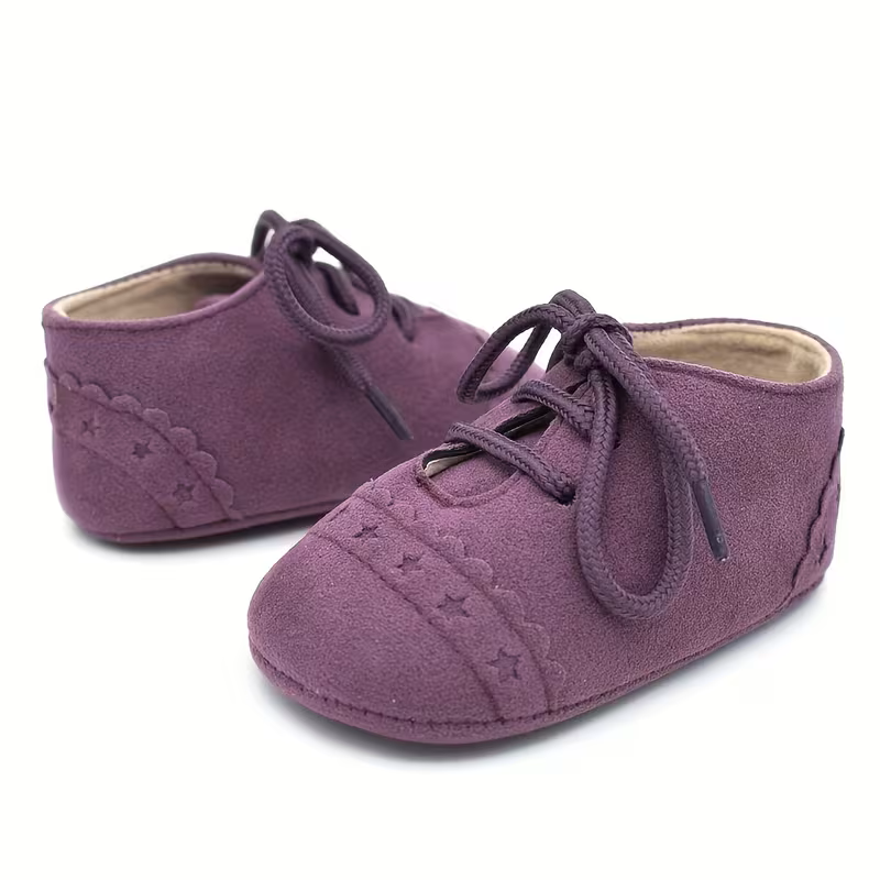 Nehodajuce udobne decje cipelice u ljubicastoj boji. Mekana unutrašnjost pruža prijatan osećaj tokom nošenja, dok pertlanje omogućava lako obuvanje i dobro prijanjanje uz stopalo. Mekani đon obezbeđuje udobnost pri nosenju Karakteristike: Broj: 19.5 Dužina gazišta: 12 cm Mekana i udobna postava Fleksibilan đon Lagan i nežan dizajn Idealne za svakodnevno nošenje, svečane prilike i prve korake