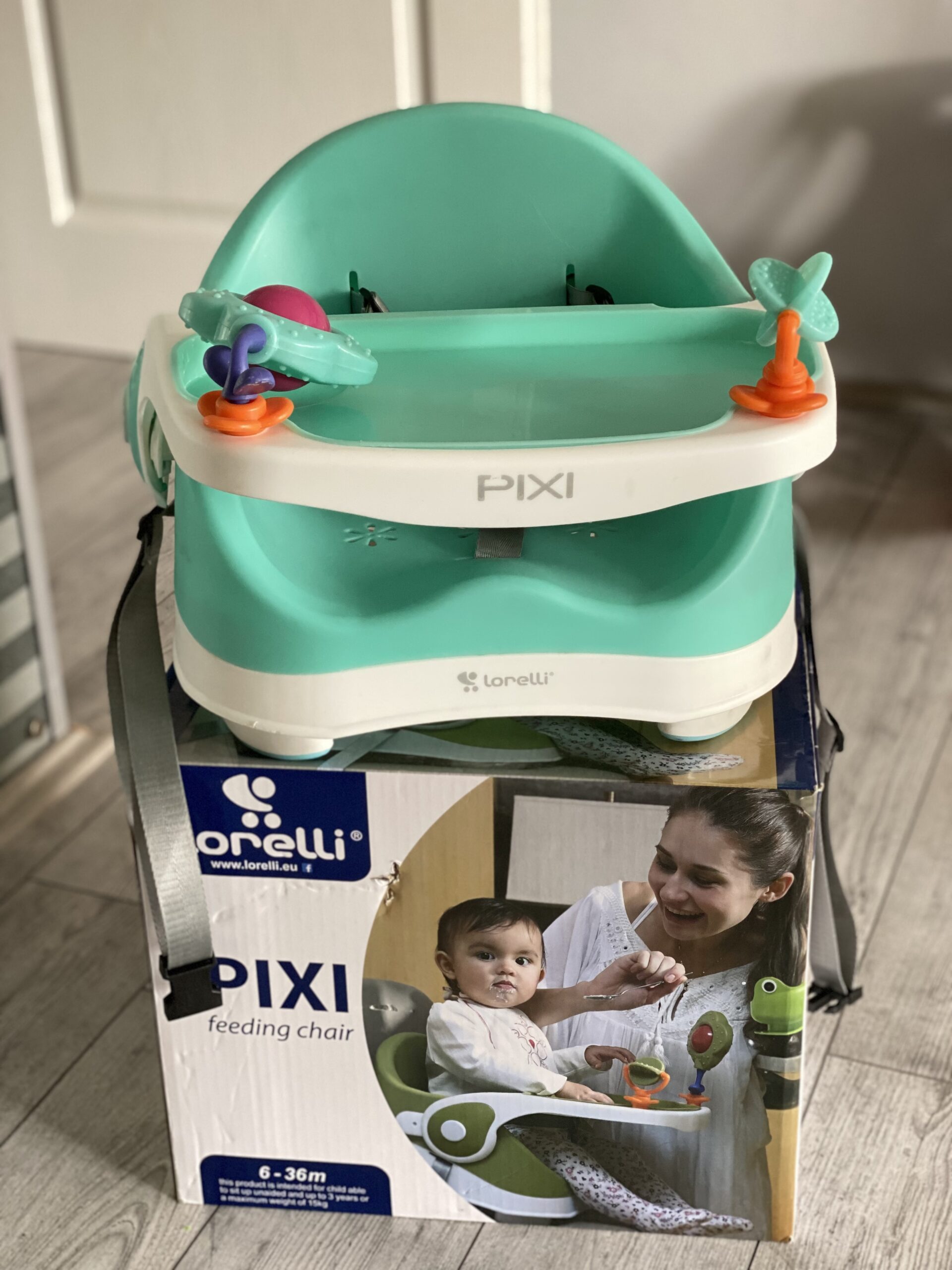 Veoma praktična hranilica za bebe. Ima dva položaja , lako se briše i pere. Pogodna je za putovanja jer je zaista mala, a opet ima i sve što je potrebno. Veže se za stolicu i dete sedi sa vama za stolom 🙂