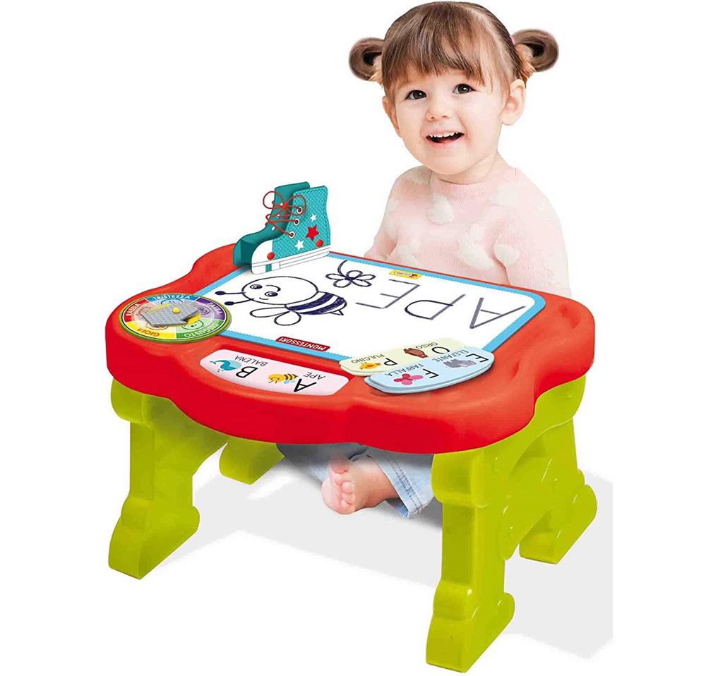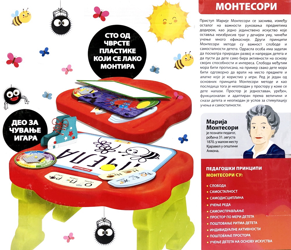 Nov Montesori edukativni sto. Samo smo ga otvorili, devojčica je bila mala u tom momentu i posle je prerasla.