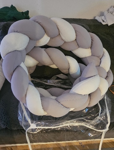 Nova ogradica pletenica sivo bela u orginal pakovanju. Odgovara za standardni krevetac.