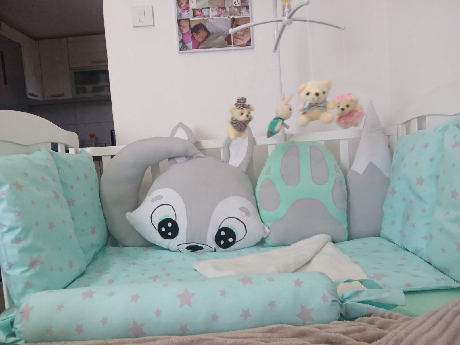 Na prodaju sve iz krevetica sa slike, dete nije htelo u krevetac tako da je sve novo nekorisceno, ogradica sa 4 ukrasna jastuceta, 4 obicna, bombona, pokrivacic sa unutrasnje strane je cebence, jastucic i carsaf. Samo ogradica placena 10000din., prodajem za 5000din.+vrteska na poklon.