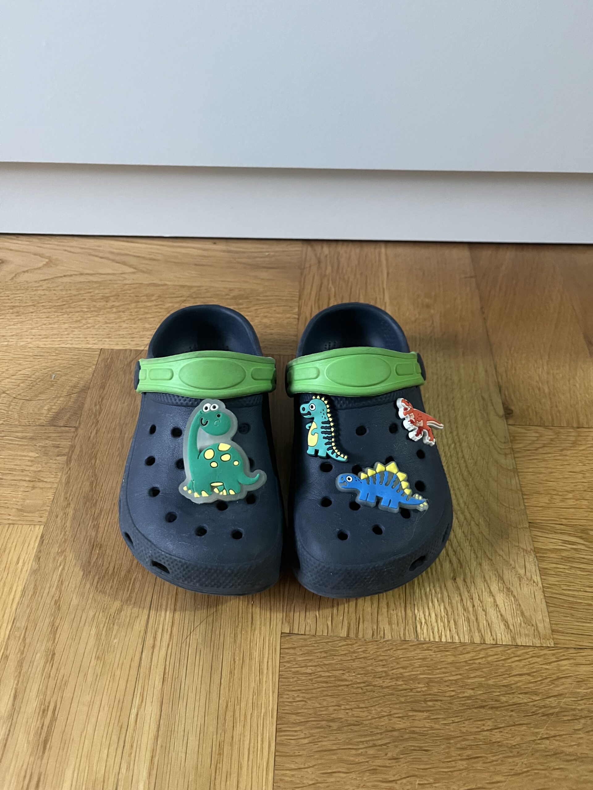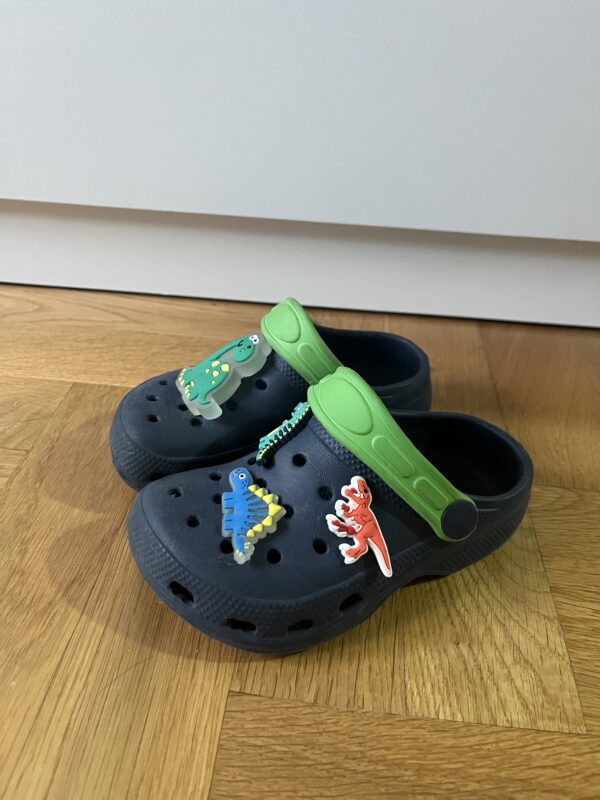 Crocs papuce za decu Kao nove, ne ostecene Broj 26, stikeri dinosaurusi svetle