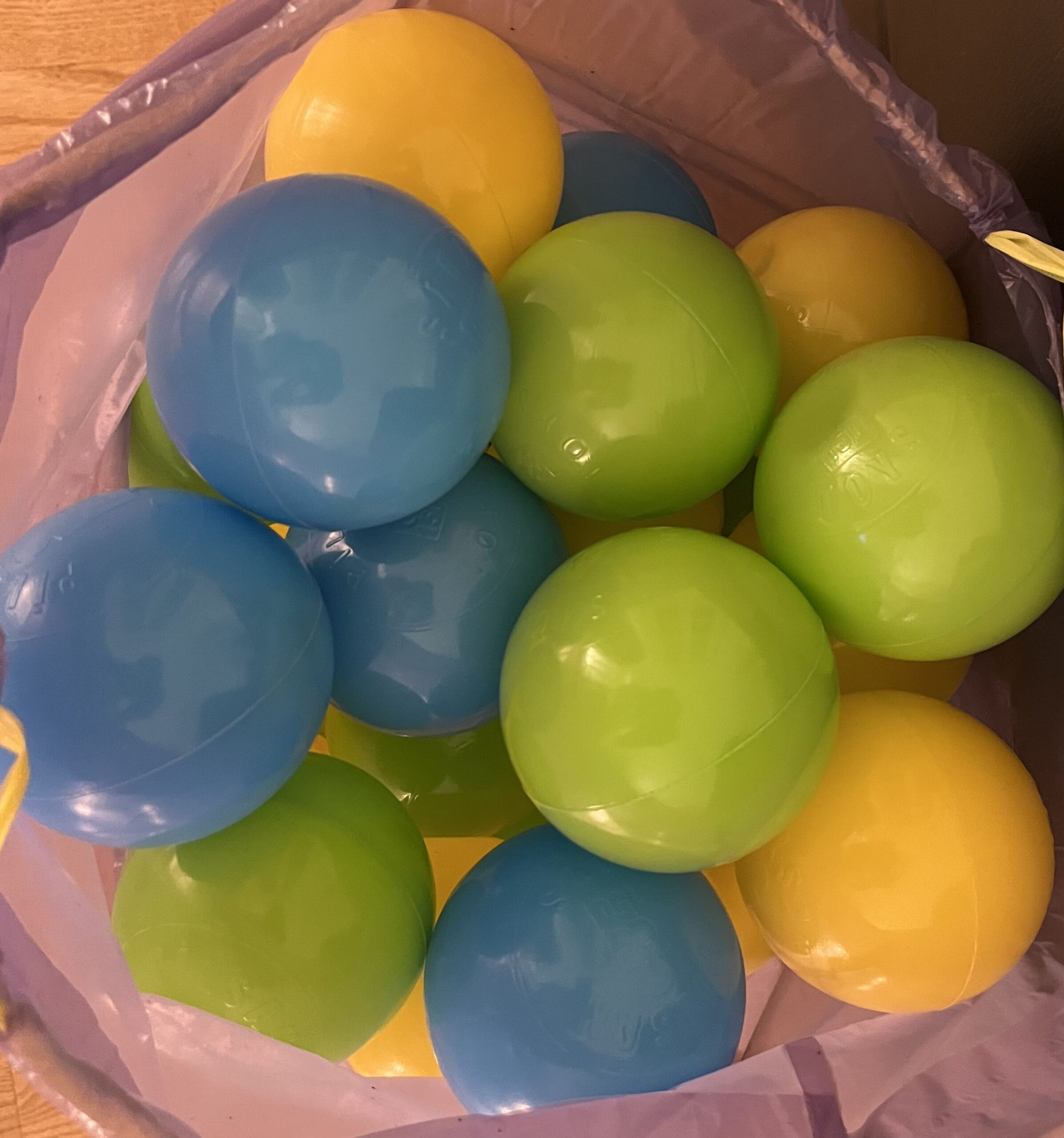 Na prodaju plastične loptice u žutoj, plavoj i zelenoj boji.