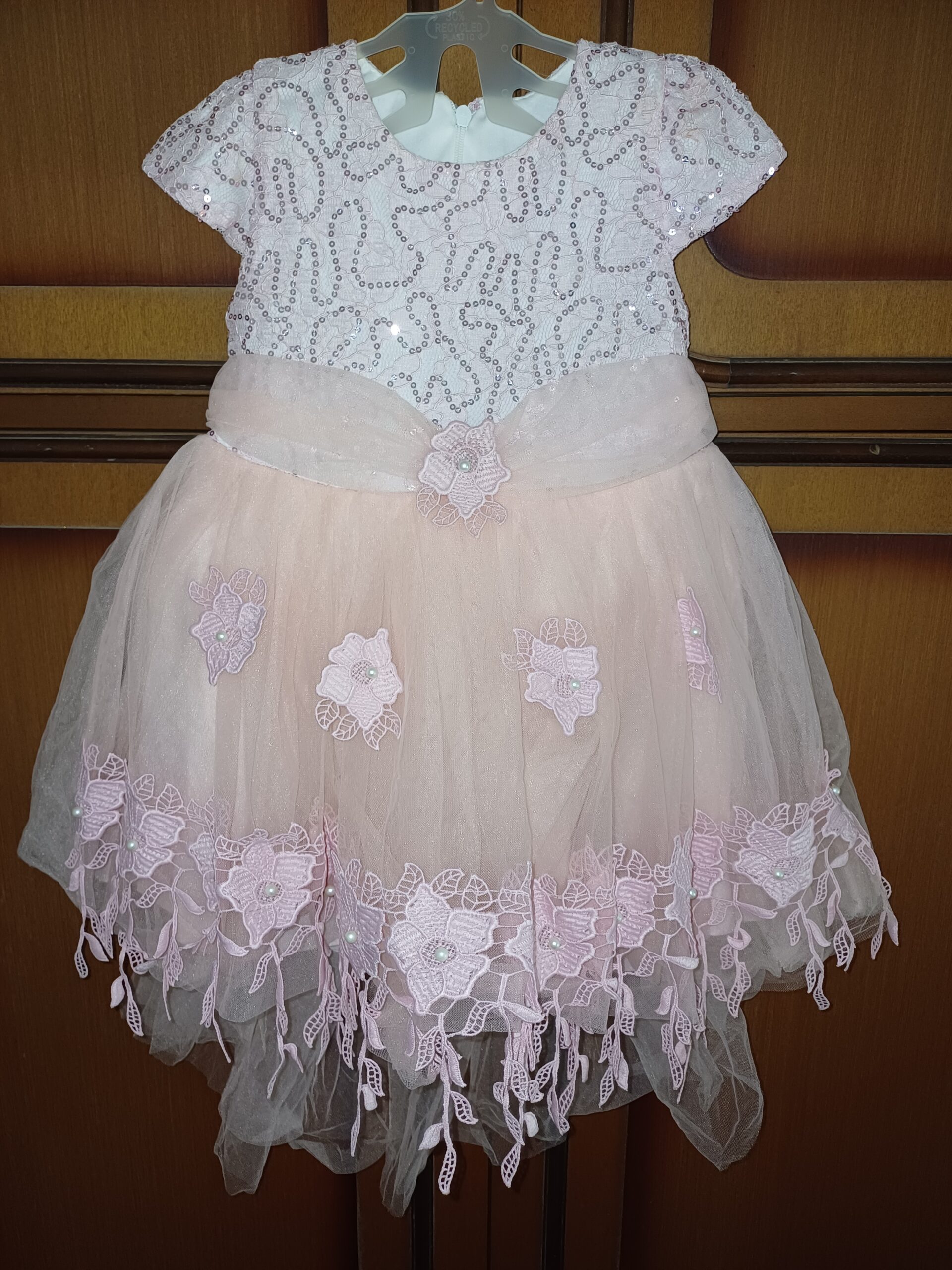 Roze haljinica za uzrast od 2-3godine Jednom nošena (bez oštećenja) Ima roze pamučnu postavu i dva sloja tila. Pozadi je duža jer ima šlep . Za više detalja pišite ispod proizvoda