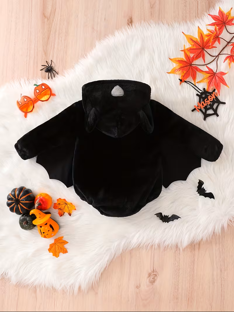 Pretvori svog mališana u najslađeg malog „šišmiša“ uz ovaj udoban i mekan bodi kombinezon sa kapuljacom! Dizajniran posebno za Noć veštica, kombinezon je crne boje, sa kapuljačom i crnim krilima i mekanim stomakom, što ga čini savršenim izborom za prve maskirane trenutke. Detalji proizvoda: Veličina: 80 9-12 meseci Boja: crna sa sivim detaljima Kapuljača + krila za potpun kostim efekat Mekan plisani materijal prijatan za bebinu kožu Praktičan i udoban za nošenje Idealan je za fotografisanje, proslave ili kao simpatičan kostim za Noć veštica – jer i bebe zaslužuju svoj mali praznični trenutak! Bodic za bebe sa kapuljacom za Noc Vestica, zakopcava se izmedju nogu driker dugmicima. Duzina rukava: dug rukav Motiv: Slepi mis Boja: crna