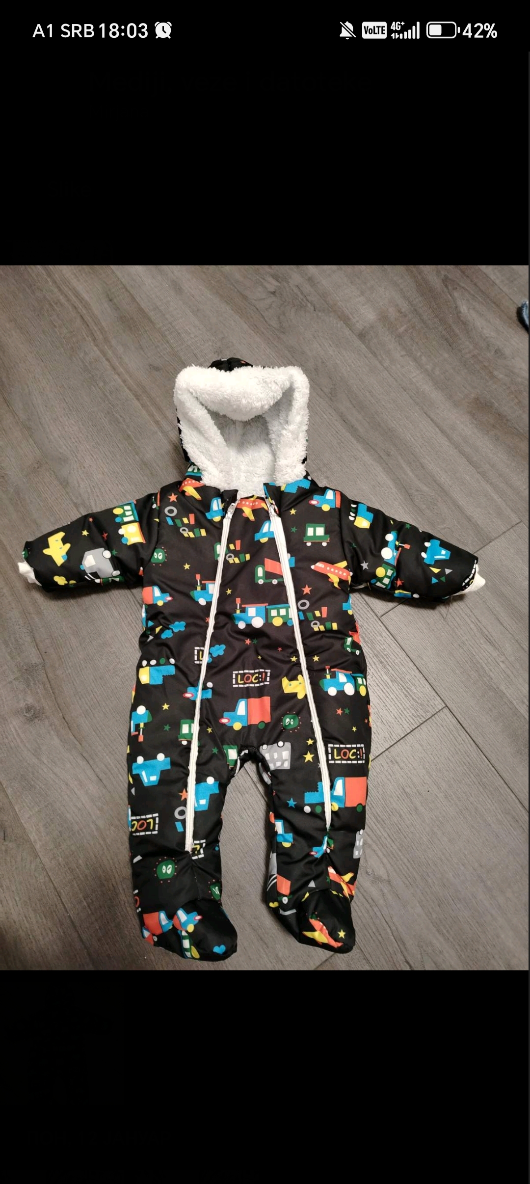 Skafander nošen par puta, beba prerasla brzo. 62 broj. Plaćen 3900.