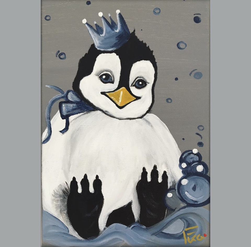 Slika akril na platnu. Pingvin 60×40.