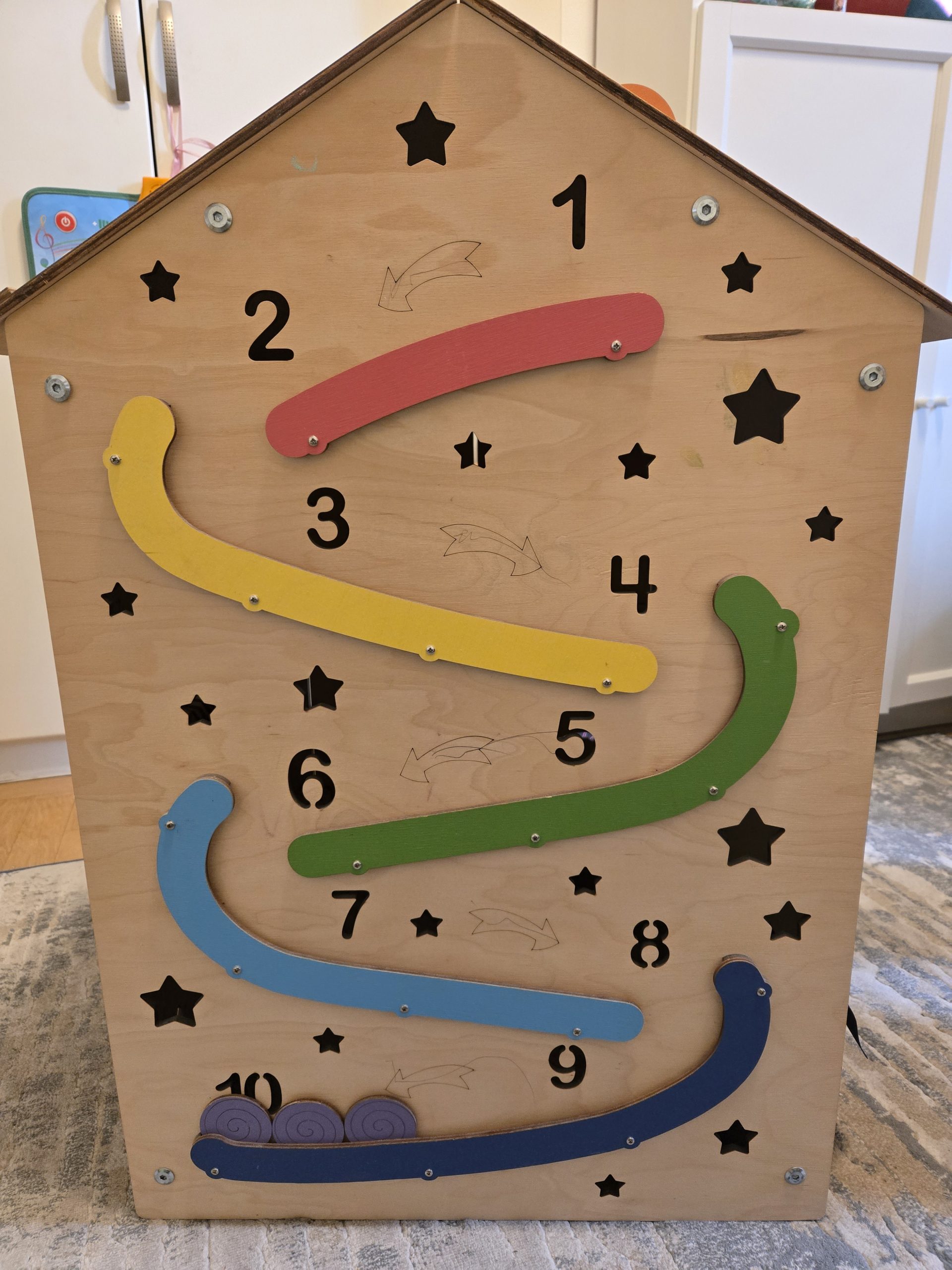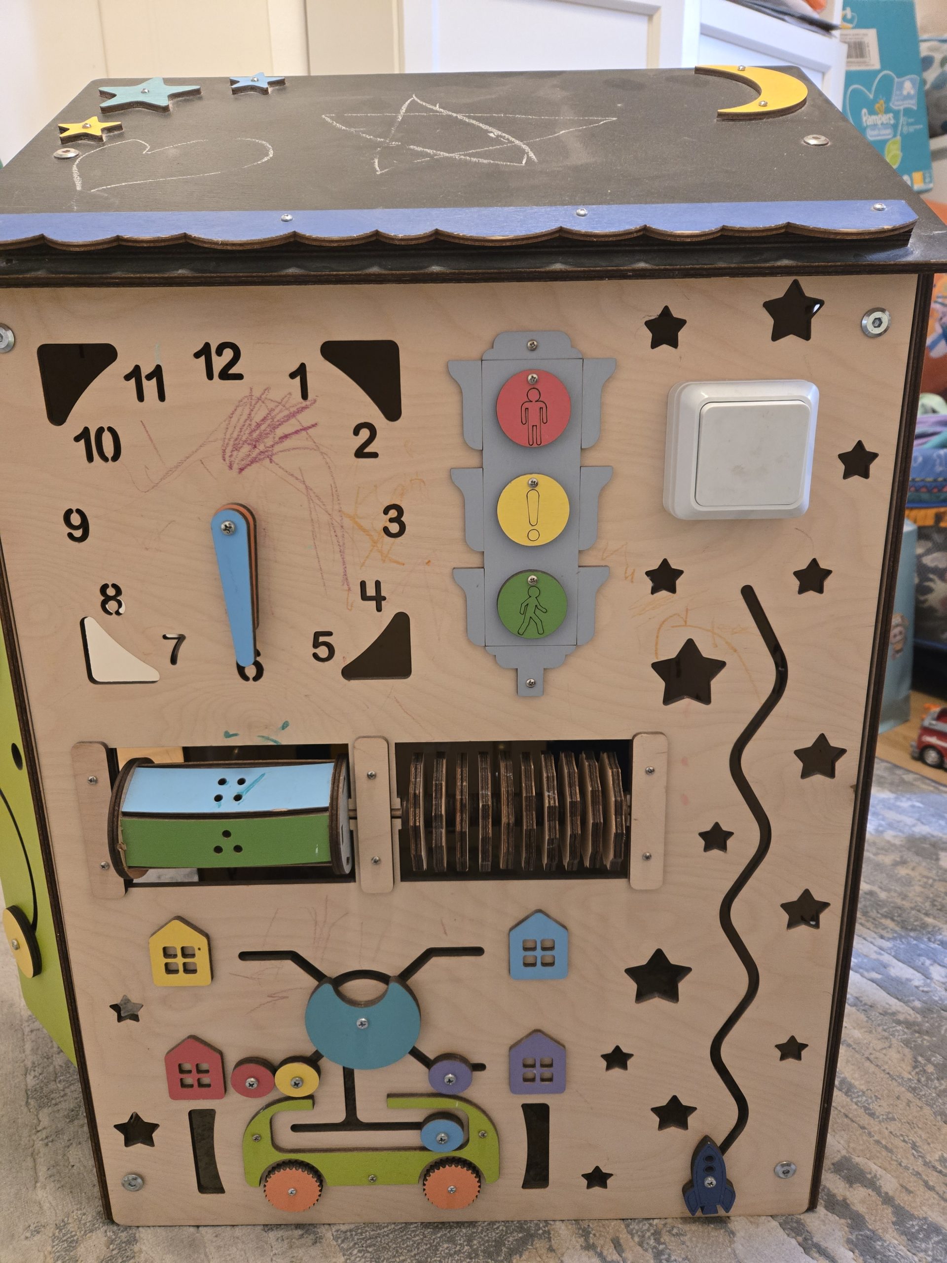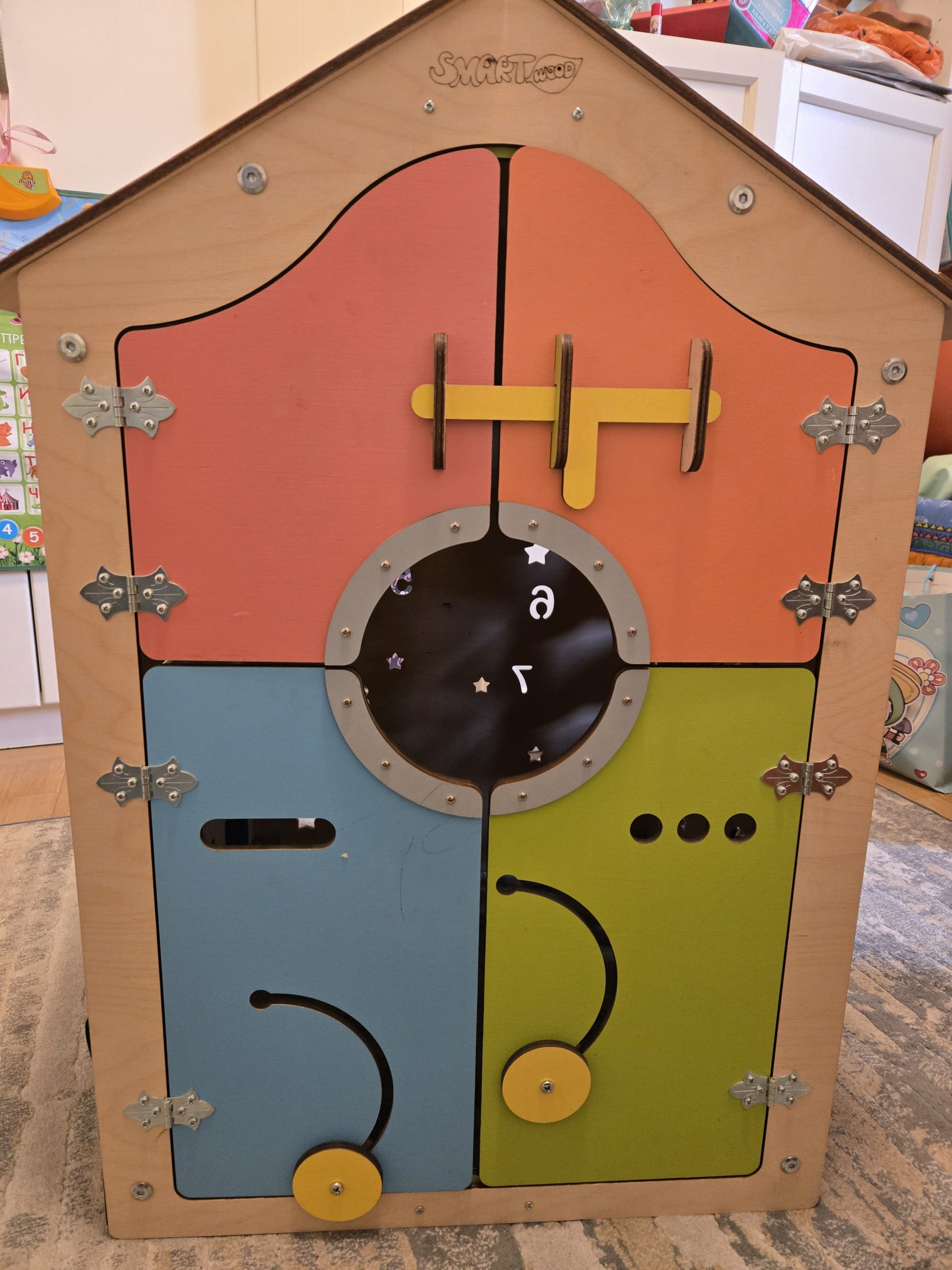 Prodajemo polovnu edukativnu kućicu za maštovitu dečiju igru : ) Kućica je dovoljno velika da dete do 5 godina može da uđe unutra i uživa u svom skrovištu. Postoji čak i LED lampica koja osvetljava unutrašnjost kućice ukoliko je detetu tako prijatnije. U ponudi je još jedna kućica koja je malo manja. Opis, kao i slike možete videti ispod i u prilogu, kućica se prodaje sklopljena. Stojim na raspolaganju za sva eventualna dodatna pitanja (Iva 0604200338). Proizvođač: Smartwood Model: Big House Uzrast: od 10-12 mes do 4-5 godina Dimenzije: 75x50x50 cm Materijal: visokokvalitetna brezova šperploča namenjena za izradu dečijeg nameštaja i igračaka, ekološke sertifikovane boje