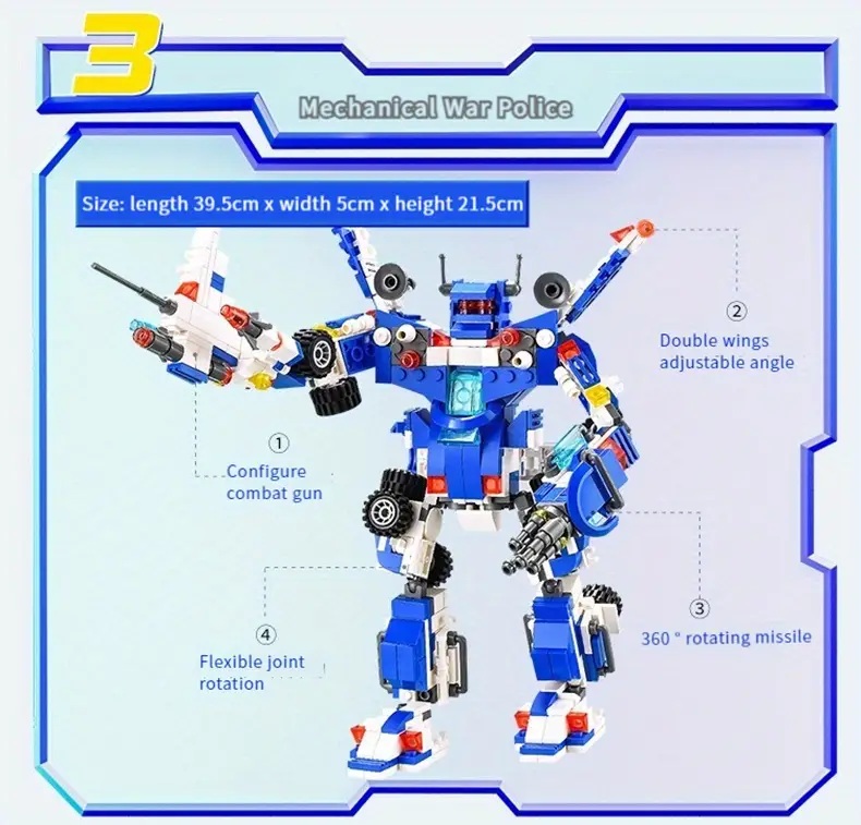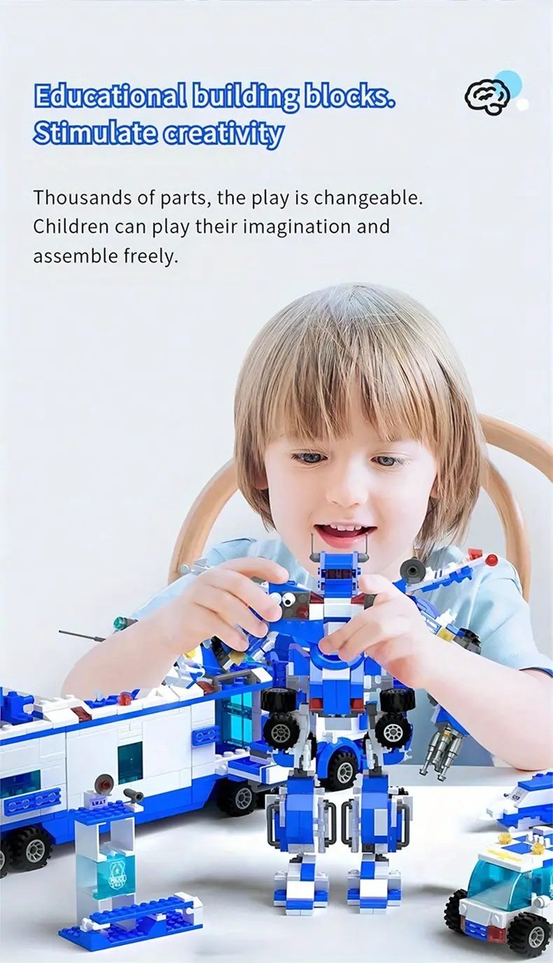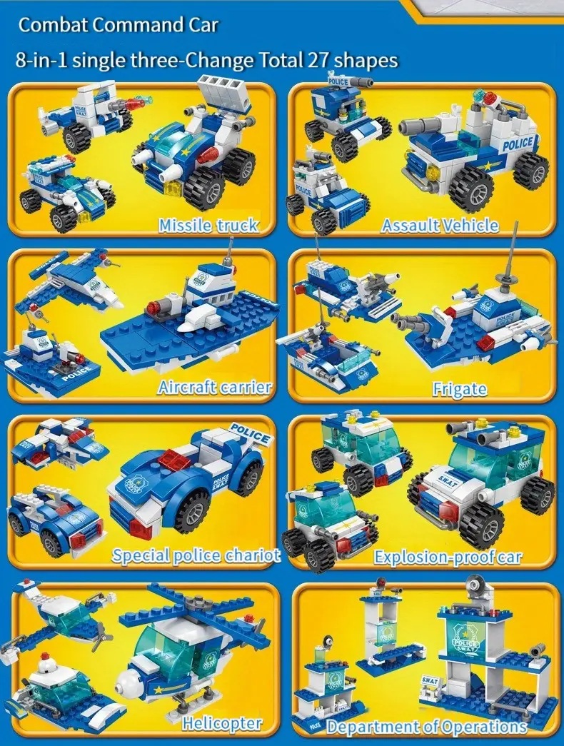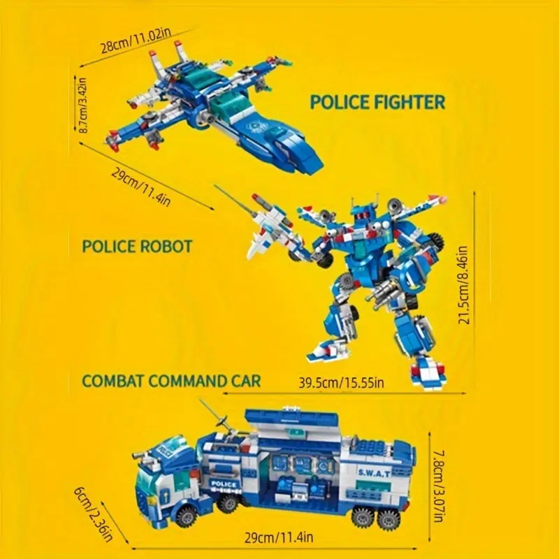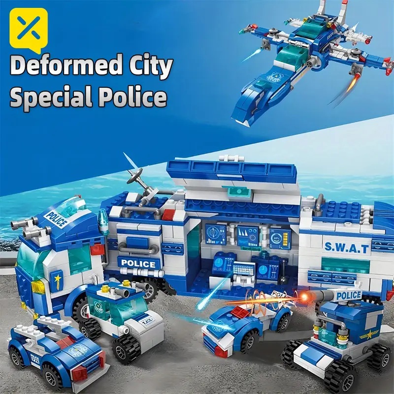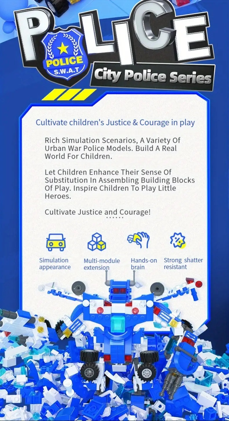 SWAT City Police – Policijski set za sklapanje Unesi akciju u igru sa ovim uzbudljivim setom od čak 700 delova! Deca mogu da sastavljaju različita policijska vozila, helikoptere, robota i komandno vozilo, i da iznova prave nove kombinacije za beskrajnu zabavu. Karakteristike: 700 delova za kreativnu igru Velika SWAT mobilna stanica koja se otvara i pretvara u komandni centar Policijski robot, helikopteri, džipovi i specijalna vozila u jednom kompletu U kompletu dobijate i 3 figure za još realističniju igru Izrađeno od kvalitetne, bezbedne plastike Ovaj set podstiče maštu, logičko razmišljanje i kreativnost, a deci pruža sate zabave i avanture. Savršen poklon za male policajce i ljubitelje akcije!