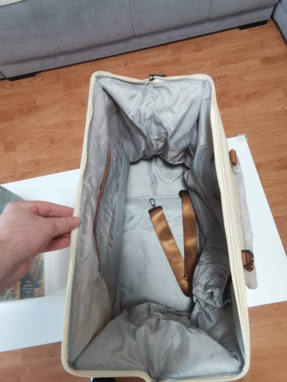 Torba je nova otpakovana samo za slikanje.Idealna za vikend putovanja.Ima kajš za rame i prostirku za presvlacenje. Dimenzije: 55,0 x 30,0 x 40,0 cm Materijal: Oksford platno, 100% najlon obloga Postava + prostirka za presvlačenje: 100% poliester Održavanje: Ne pere se u mašini – Očistite vlažnom krpom i odmah osušite