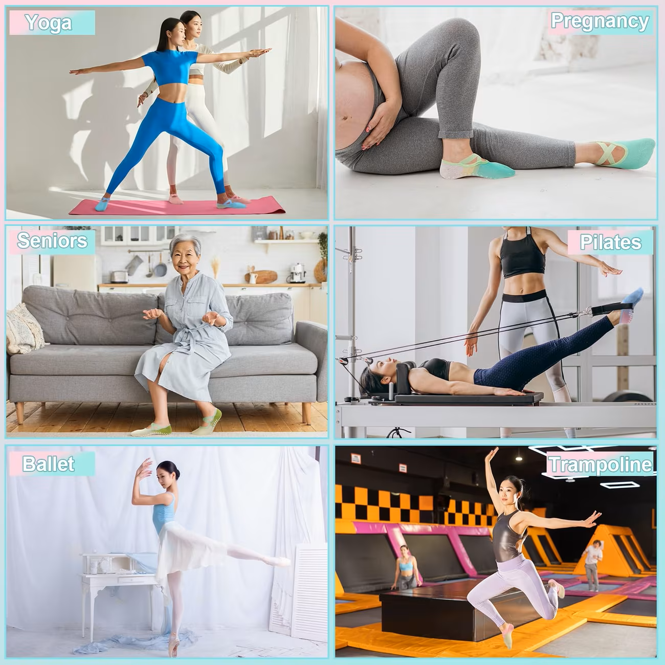 Prigrlite udobnost, stil i funkcionalnost uz ove čarape za jogu, fitnes, aerobik, pilates… Unapredite svoje sesije joge, sportske aktivnosti ili svakodnevne vežbe sa ovim inovativnim i estetski prijatnim čarapama koje daju prioritet dobrobiti vašeg stopala i poboljšavaju vaše celokupno iskustvo u fitnesu. Zakoračite u svet udobnosti i samopouzdanja, gde je svaki pokret podržan, a svaki trening postaje prijatno putovanje.